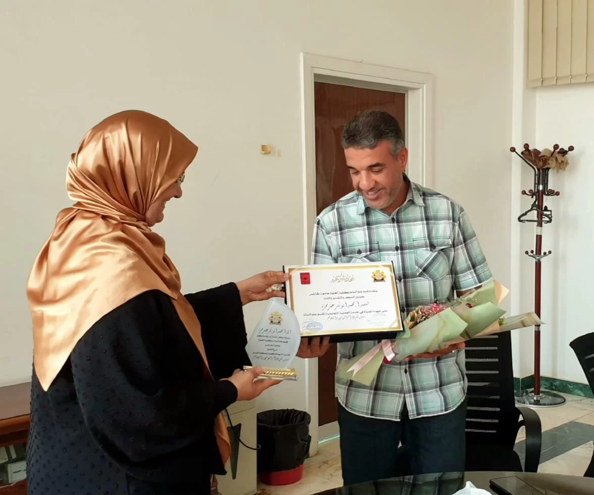 كما تم تكريم كل من السيد :اسامة الحمادي الرسام بالمعشبة لمجهوداته في التجهيزات الخاصة بالاعتماد البرامجي من تصميم لمطوية القسم والبوستر والدليل .