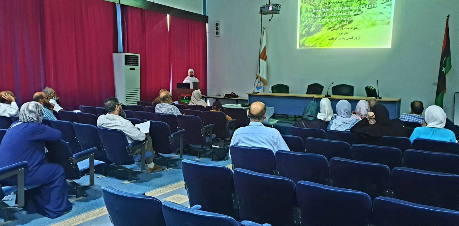 وكانت الحلقة بعنوان : حصر النباتات الوعائية بوادي الحبوطات ببلدة بني نصير جنوب غريان تحت اشراف الأستاذ الدكتور فتحي بشير الرطيب