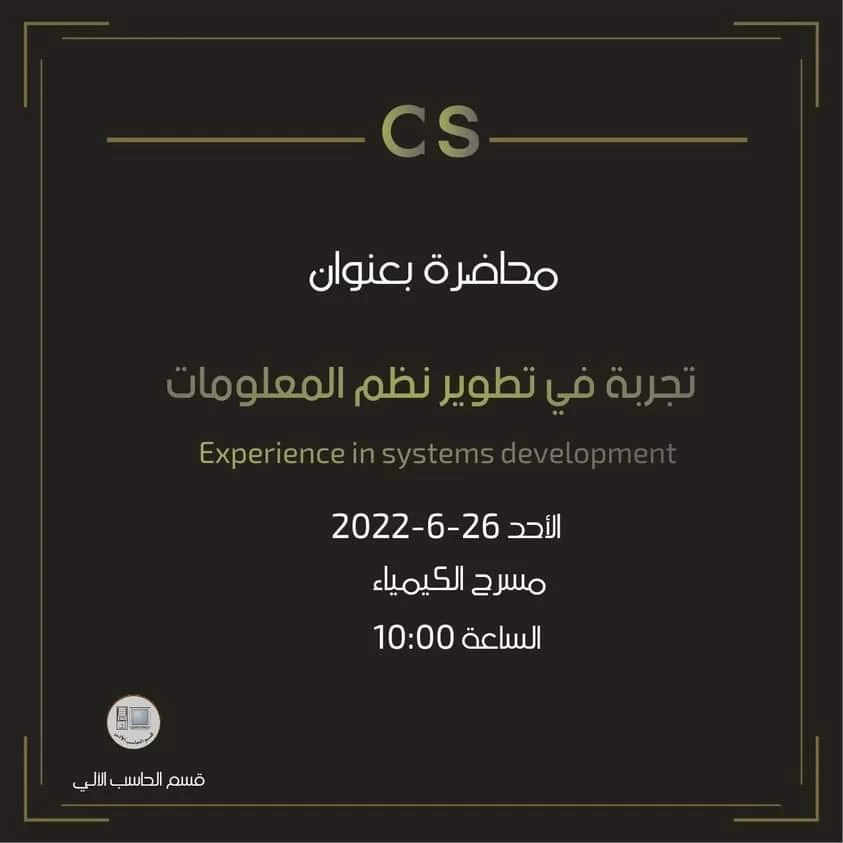 حيث سيقوم المحاضر بعرض تجربة عمله في مشروع تطوير نظم مصرفية في الولايات المتحدة