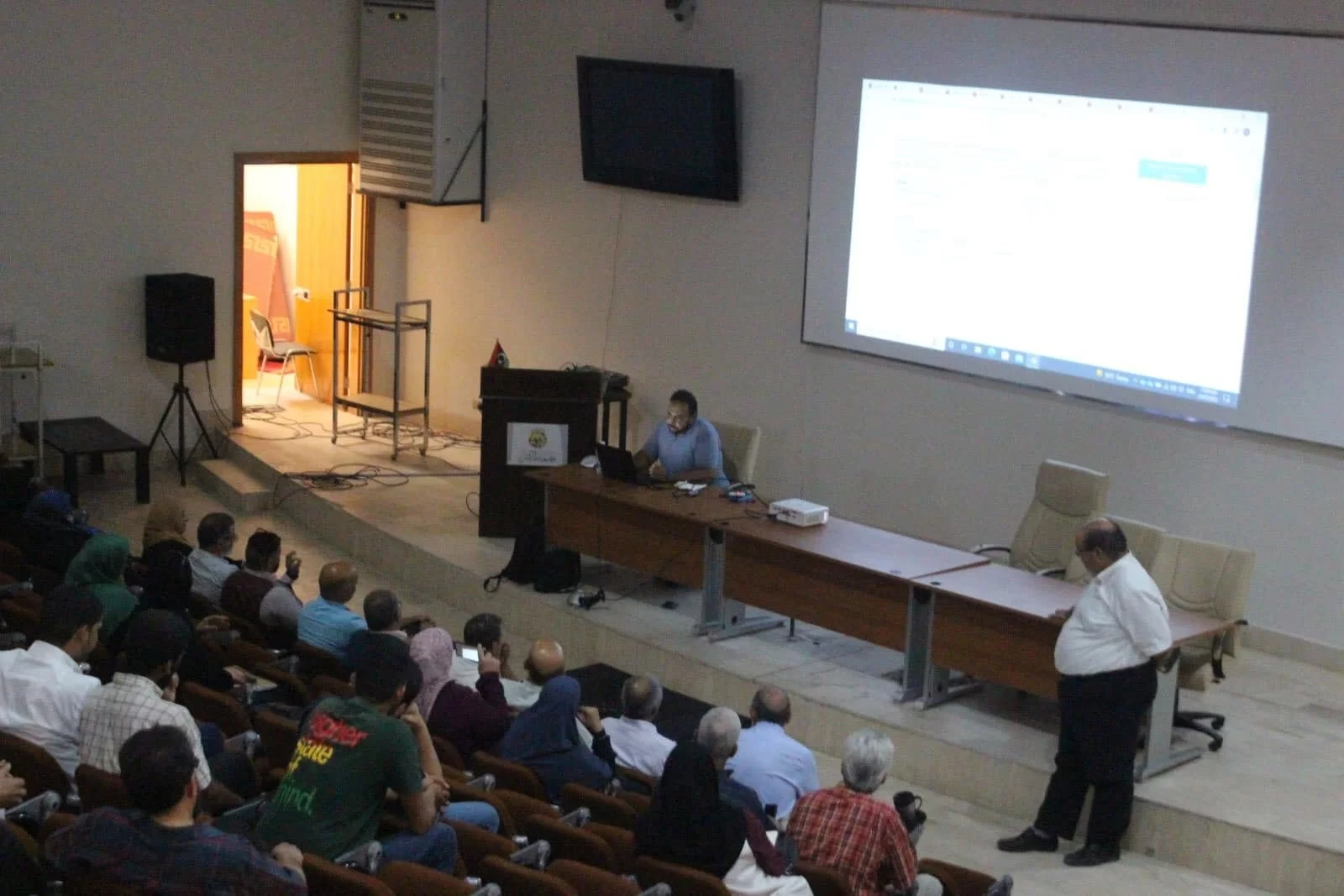 من ضمن نشاطات قسم علم الحاسب الآلي وبتنسيق مع مكتب التعاون الدولي بالكلية ، أقيمت محاضرة بعنوان : استخدامات أنظمة التقييم الآلي والذكاء الاصطناعي في طرق التدريس الحديثة وذلك يوم الخميس 21/07/2022 بمسرح منصور مخلوف بمبنى قسم علم الكيمياء بكلية العلوم. حيث قام د. عبدالسلام العويني بعرض طرق التدريس الحديثة المستخدمة بجامعه الينوي في الولايات المتحدة الامريكية والتي تعتمد على نظم التقييم الآلي والذكاء الاصطناعي. وكان هذا النشاط بحضور السيد الاستاذ الدكتور رمضان الجدي عميد كلية العلوم وحضر جانبا من المحاضرة أ.د ربيعة الغزير وكيل الكلية وكذلك بحضور د. حسين قنود رئيس قسم علم الحاسب الآلي و د. ابتسام عبدالله الاسطى مدير مكتب التعاون بالكلية و د. محمد المصراتي رئيس قسم علم الاحصاء.كما صاحب حضور عميد الكلية و رئيس اللجنة العليا لعمداء كليات العلوم الفريق العلمي المكلف بالعلوم الرياضية في لجنة اعداد دليل الدراسة لكليات العلوم بالجامعات الليبية.شارك في الحضور أيضا نخبة من أعضاء هيئة التدريس بقسم الحاسب الآلي وعدد كبير من الطلبة من قسم علم الحاسب الالي وكذلك من الكليات الاخرى كالصيدلة وغيرها. أشاد الحضور بانها كانت محاضرة رائعة تم الاجابة فيها على جميع الاستفسارات علي كيفية الاستفادة منها وتطبيقها.وتمضي كليه العلوم منطلقة بكل قواها وبكافة اقسامها العلمية لتكون مناره للعلم وسندا لكافه كليات الجامعة .