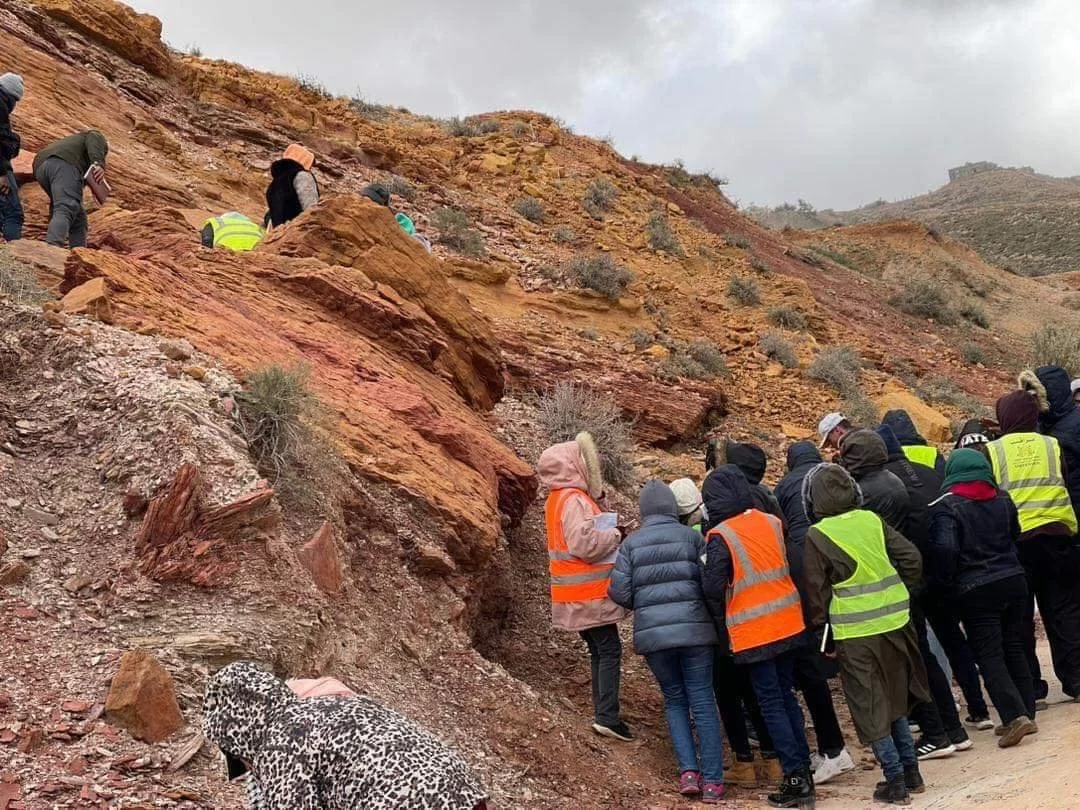 The students studied the rock formations and identified the field relations in addition to the geological structures and the impact of the complex tectonic processes that the region was exposed to during the different geological times in several places, namely: