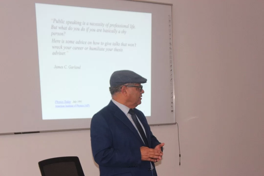 استُهلت أعمال الورشة بمحاضرة ألقاها الأستاذ الدكتور أحمد إمحمد الحماصي، خبير الدراسات العليا وعضو هيئة التدريس بقسم الفيزياء، تحت عنوان: