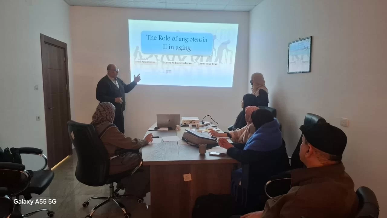 في إطار التعاون بين مؤسسات التعليم العالي والبحث العلمي والاستفادة من كافة الامكانيات المتاحة، وفي سبيل إنجاح برامج الدكتوراة للعلوم التطبيقية فقد تم إعطاء محاضرة الكيمياء الحيوية بقاعة المركز الليبي لبحوث التقنيات الحيوية وذلك يوم الخميس الموافق 4/12/2025 تحت إشراف أ.د. فرج التائب. كانت أجواء المحاضرة تفاعلية غنية بالمعلومات العلمية ومليئة بالمناقشات المثمرة، حيث تم استعراض عدد من العروض القيمة بعنوان "دور أنجيوتنسين والشيخوخة".