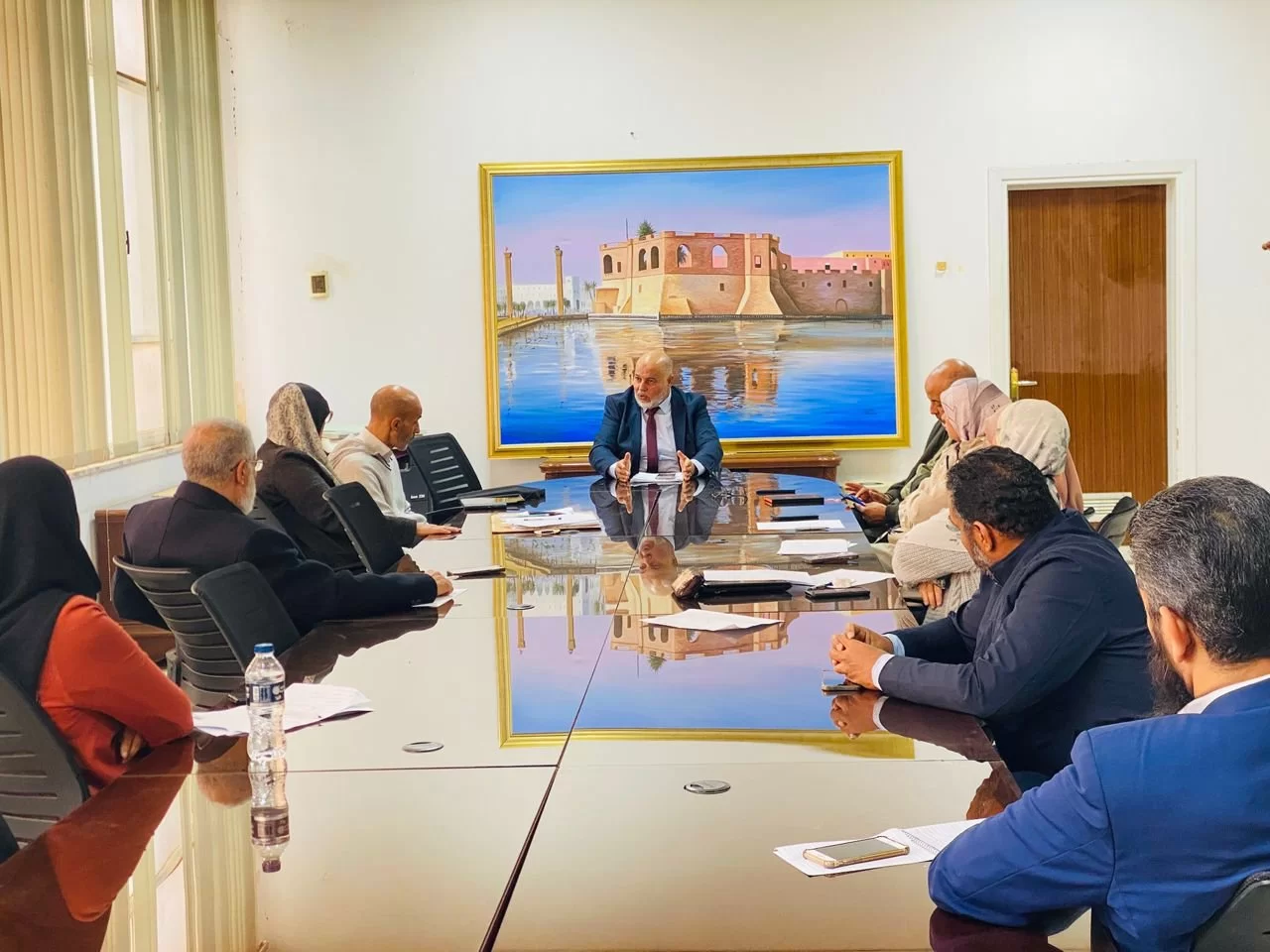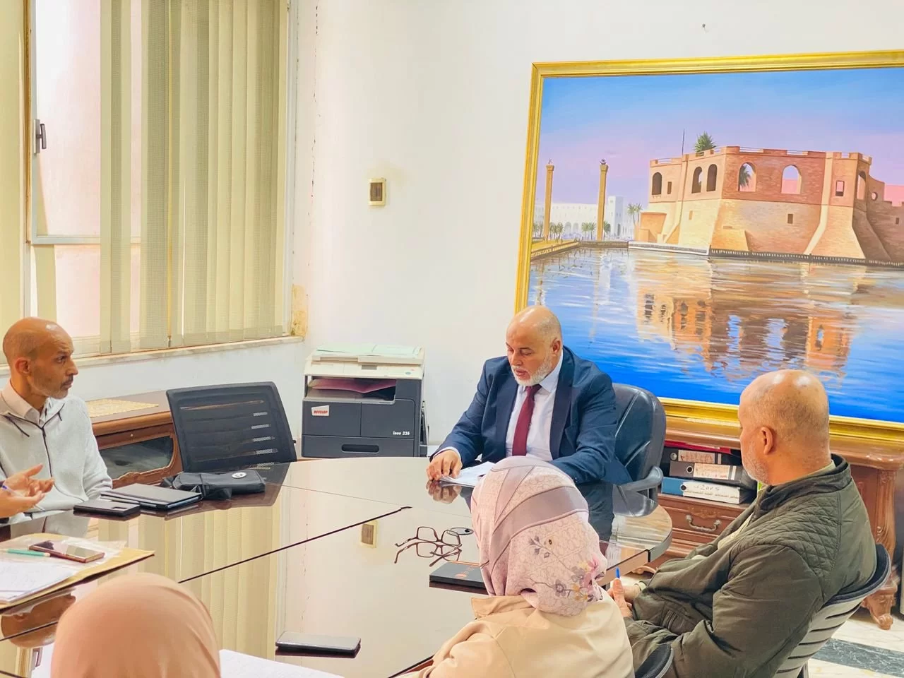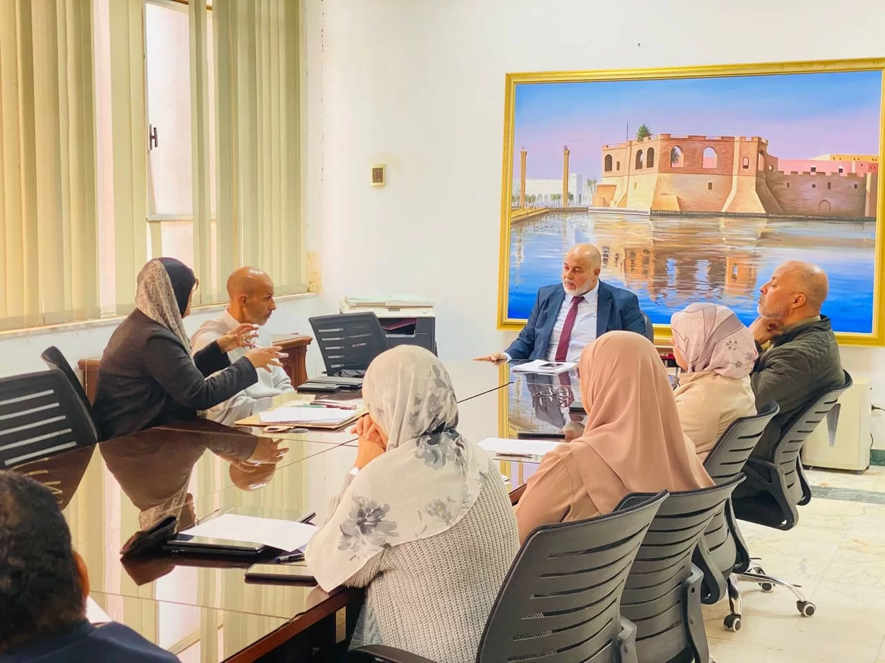 اجتمع صباح اليوم الاربعاء الموافق 11 فبراير 2026م بصالة اجتماعات الكلية الساعة 11 صباحاً، كل من رئيس مكتب الدراسات العليا والتدريب بالكلية أ. د. خالد المرغني وعضوي لجنة الدراسات العليا بالكلية أ. د. الطاهر الشايبي و د. عبدالرحمن ارحومة مع السادة والسيدات الاكارم منسقي المناهج والجودة باقسام الكلية وفي حضور رئيس وحدة المنظومات والمتابعة بمكتب الدراسات العليا أ. سناء طيبة و كذلك السيدة أ. هويدا القويري رئيس قسم الوسائل التعليمية بالكلية ورحب مدير المكتب بالحضور مبيناً اهمية التعاون من اجل تطوير مناهج الدراسات العليا والتاكد من ملائمتها لمعايير الجودة المطلوبة. وتم خلال الاجتماع مناقشة المواضيع التالية: