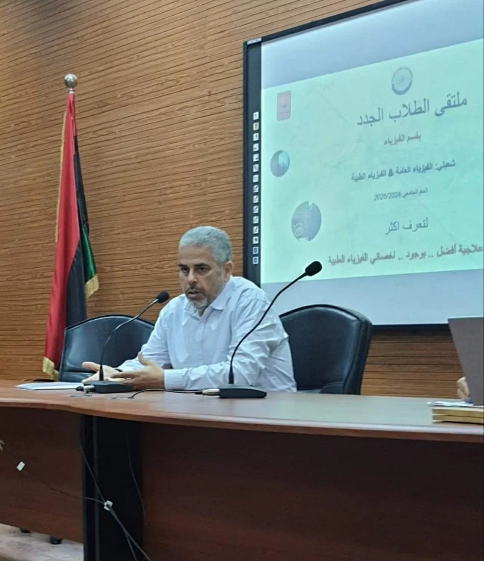 أقيم اليوم الاثنين الموافق 18/ 11 /2024م ملتقى الطلاب الجدد بقسم الفيزياء بكلية العلوم جامعة طرابلس تحت شعار بيئة علاجية أفضل .. بوجود .. اخصائي الفيزياء الطبية.