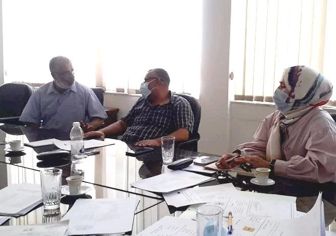 عقد مجلس كلية العلوم اجتماعه العادي التاسع وذلك عند الساعة 11:00 من صباح اليوم الاحد الموافق 19/09/2021م بقاعة الاجتماعات بالكلية برئاسة الاستاذ الدكتور رمضان المبروك الجدي عميد الكلية وبحضور السادة وكيل الشؤون العلمية ورؤساء الاقسام العلمية ومدراء المكاتب بالكلية.وذلك لمناقشة بنود جدول الاعمال التالي :1-اعتماد المحضر السابق.2-الدراسة والامتحانات.3-الجودة وما حدث فيها من تقدم على مستوى الاقسام.4-مناقشة الاستفادة من المدرجات والقاعات للكليات الاخرى بالجلمعة.5-مايستجد من اعمال.