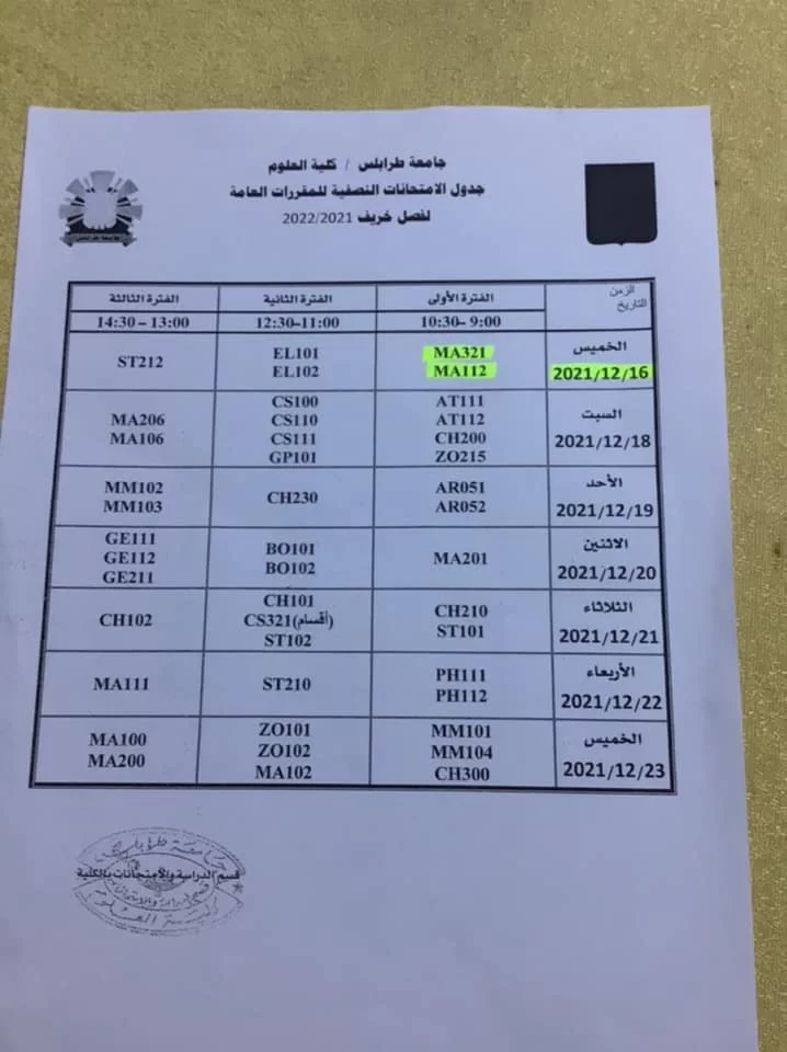 إنطلقت صباح اليوم الخميس الموافق 16/12/2021 امتحانات النصفيه الاولى لطلبه وطالبات الكليه للمرحله العامه تمنياتنا بالنجاح والتوفيق لجميع ابنائنا طلاب وطالبات الكليه