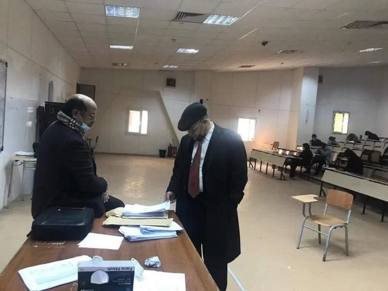 تفقد السيد عميد الكليه السيد الاستاذ الدكتور رمضان الجدي صباح اليوم السبت الموافق 5 مارس 2022 سير الامتحانات النهائيه لمقرر رياضه 1 - GS101 التي بدأت على بركه الله صباح اليوم بهدف الاطمئنان على توفير جميع عوامل الهدوء و الاستقرار للطلاب الممتحنين واستفسر من بعض الطلبه عن أدائهم وحثهم على بذل المزيد من الجهد والعطاء وتمنى لهم النجاح .