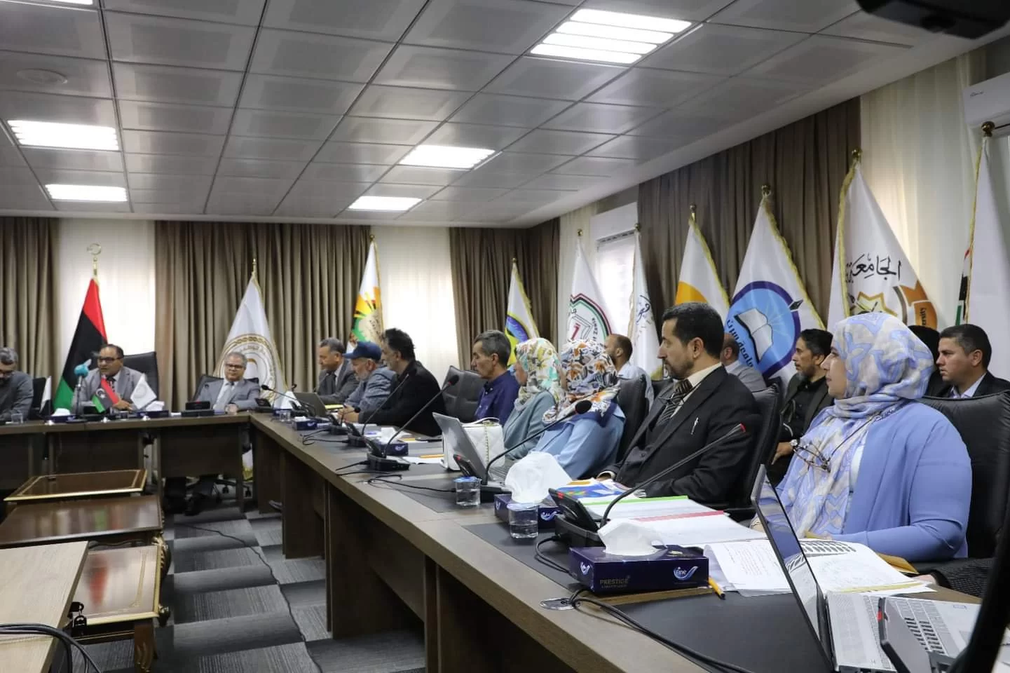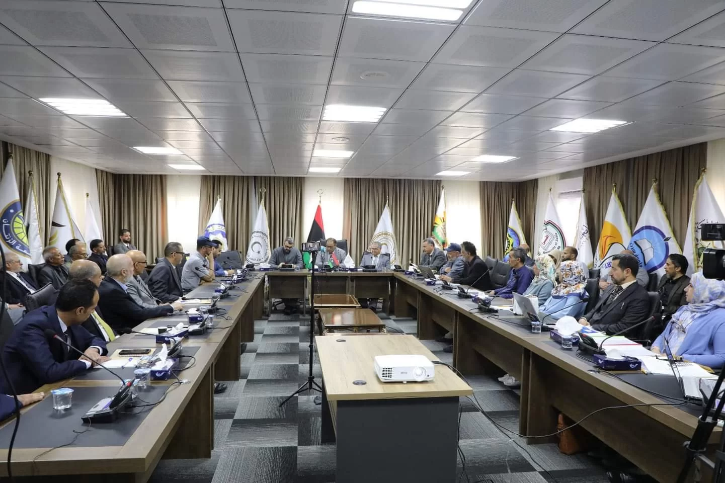 His Excellency the Minister of Higher Education and Scientific Research meets with the Committee for the Classification of Chemicals in Educational, Research and Training Institutions in Libya and the Committee for Inventory of Laboratories in Libyan Universities, in the presence of both His Excellency the Minister of Education and His Excellency the Minister of Local Government, where Dr. Imran Al-Qayeb welcomed the ministers and members of the aforementioned committees, appreciating the efforts made Because of the importance of this work in preserving the safety of society and the environment, this meeting began with a presentation by the Factories Inventory Committee of the results of its work, in which it indicated the number of devices, whether operating or that need simple maintenance or permanently stopped, as well as some data and statistics that were collected from All Libyan universities, then moved to the Chemical Classification Committee in all educational, research and training institutions, which in turn presented a summary of the results of the committee’s work, which was represented in the number of chemicals and their complete classification in terms of their validity as well as in terms of their use, whether educational or research, and provided accurate statistics and indicators clear.