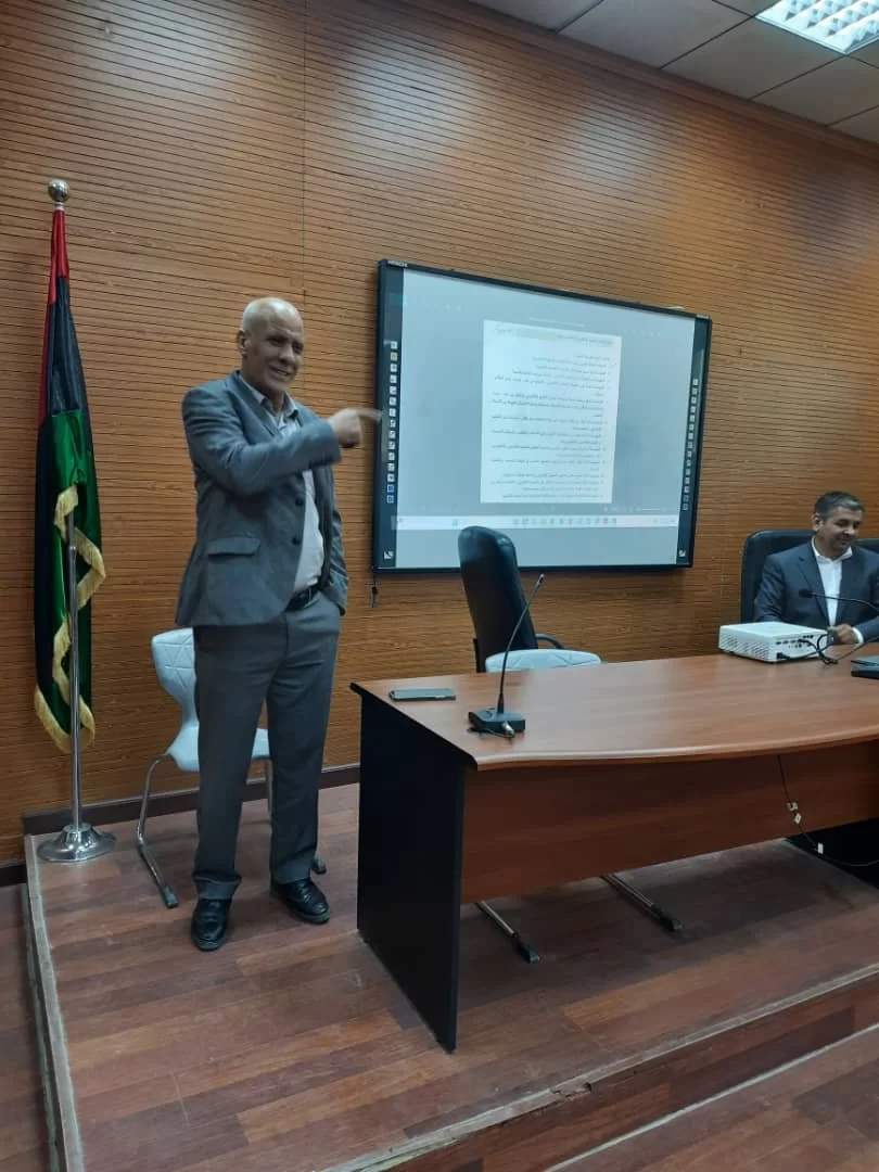قدّم الورشة الدكتور أسامة القديري، مدير مركز التعليم عن بُعد، بحضور عميد الكلية، ا.د. رمضان الجدي و وكيل الكليه للشؤون العلمية، ا.د. محمد عبدالعزيز ومدير مكتب الجودة بالكليه ا.د. فوزي وحيده ومدير مركز الجوده بالجامعه ا.د.بشير الزرزاح ، إلى جانب رؤساء الأقسام العلمية ومنسقي الجودة بالكلية.