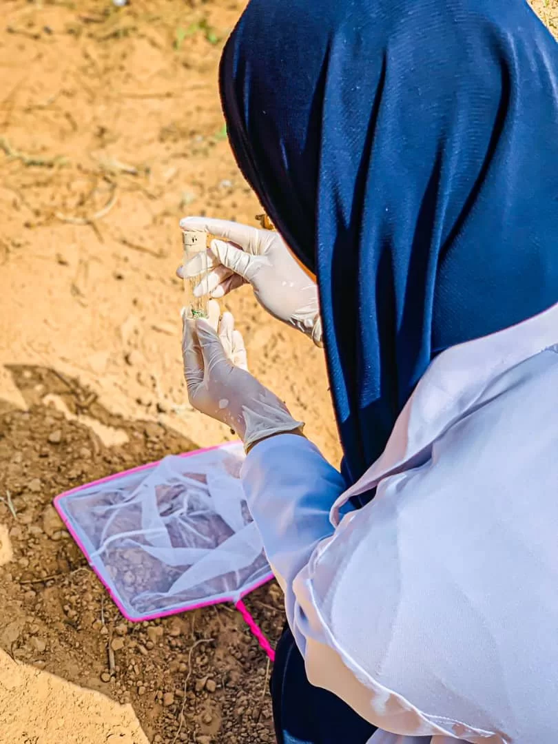 حيث تناولت الحقلية الجانب العملي من المقررات و التعرف على بعض أنواع الحشرات و القواقع البرية و العناكب في بيئتها و كيفية اصطيادها و قد تم تجميع عينات مختلفة ليتم استكمال الجانب العملي من المقررات لتصنيف العينات و تشريحها بالإضافة إلى حفظ و إعداد المجاميع الحشرية في معامل قسم علم الحيوان.