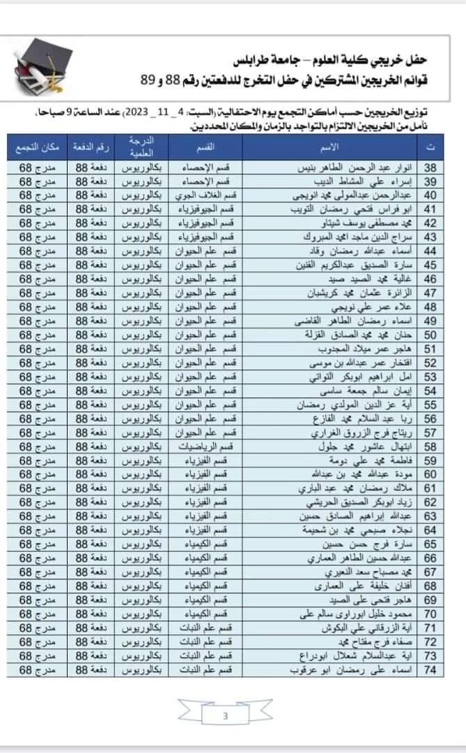 قوائم الخريجين الذين أكدوا اشتراكهم والذين سيتم تكريمهم بحفل الخريجين يوم السبت المقبل الموافق 04-11-2023م