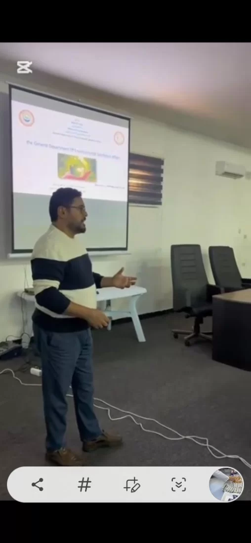 حيث قدّم المهندس مصطفي الشتيوي المكلف بأعمال المختبرات بالإدارة العامة لشؤون الإصحاح البيئي ورئيس قسم المختبرات بمديرية شؤون الاصحاح البيئي جنوب طرابلس شرح مفصل من خلال جهاز العرض المرئي تضمن التعريف بالمديرية وأقسامها وتخصصاتها المختلفة والدور الكبير الذي تقوم به في نطاق البلدية وخارجها