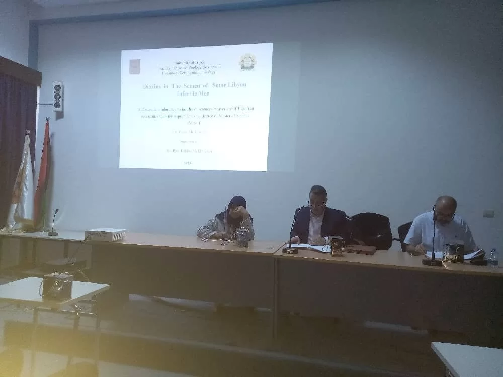 "الديوكسينات في السائل المنوي لبعض الرجال الليبيين المصابين بالعقم" وقد تكونت لجنة المناقشة من :