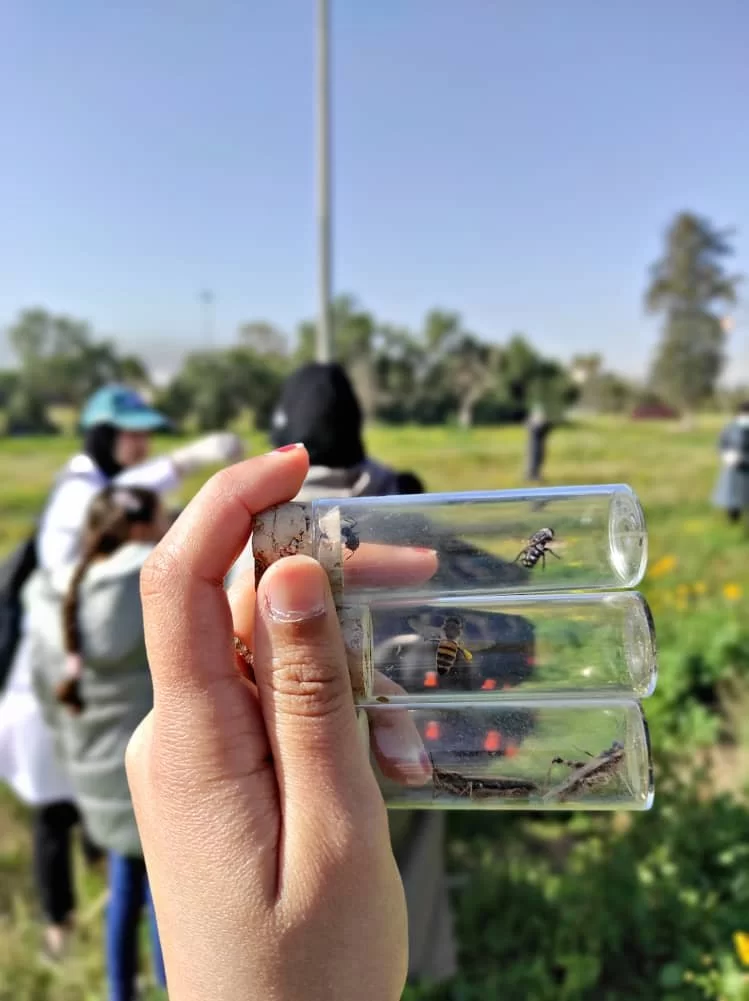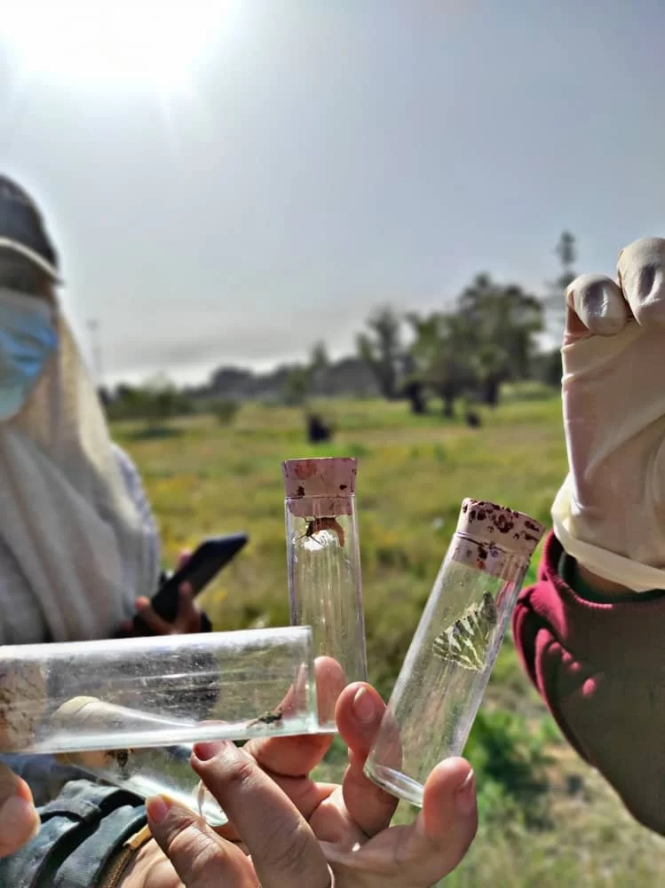 The fieldwork dealt with the practical side of the course, identifying some types of insects and pests, how to deal with them, catching them, and collecting different samples of insects.