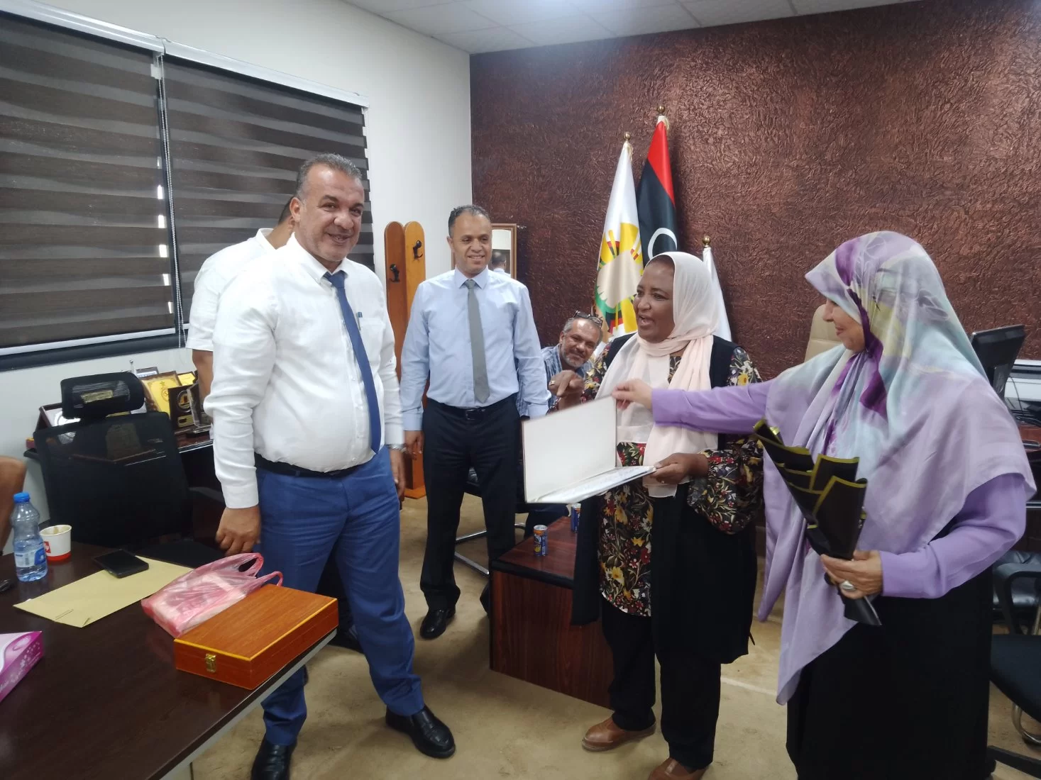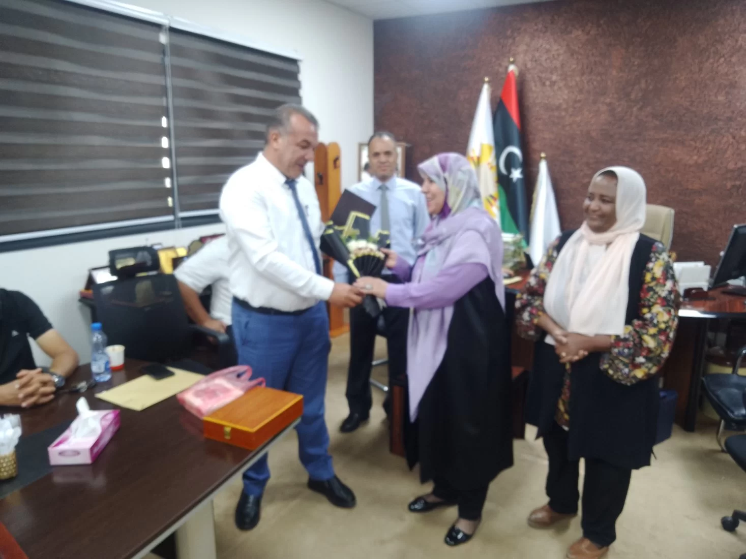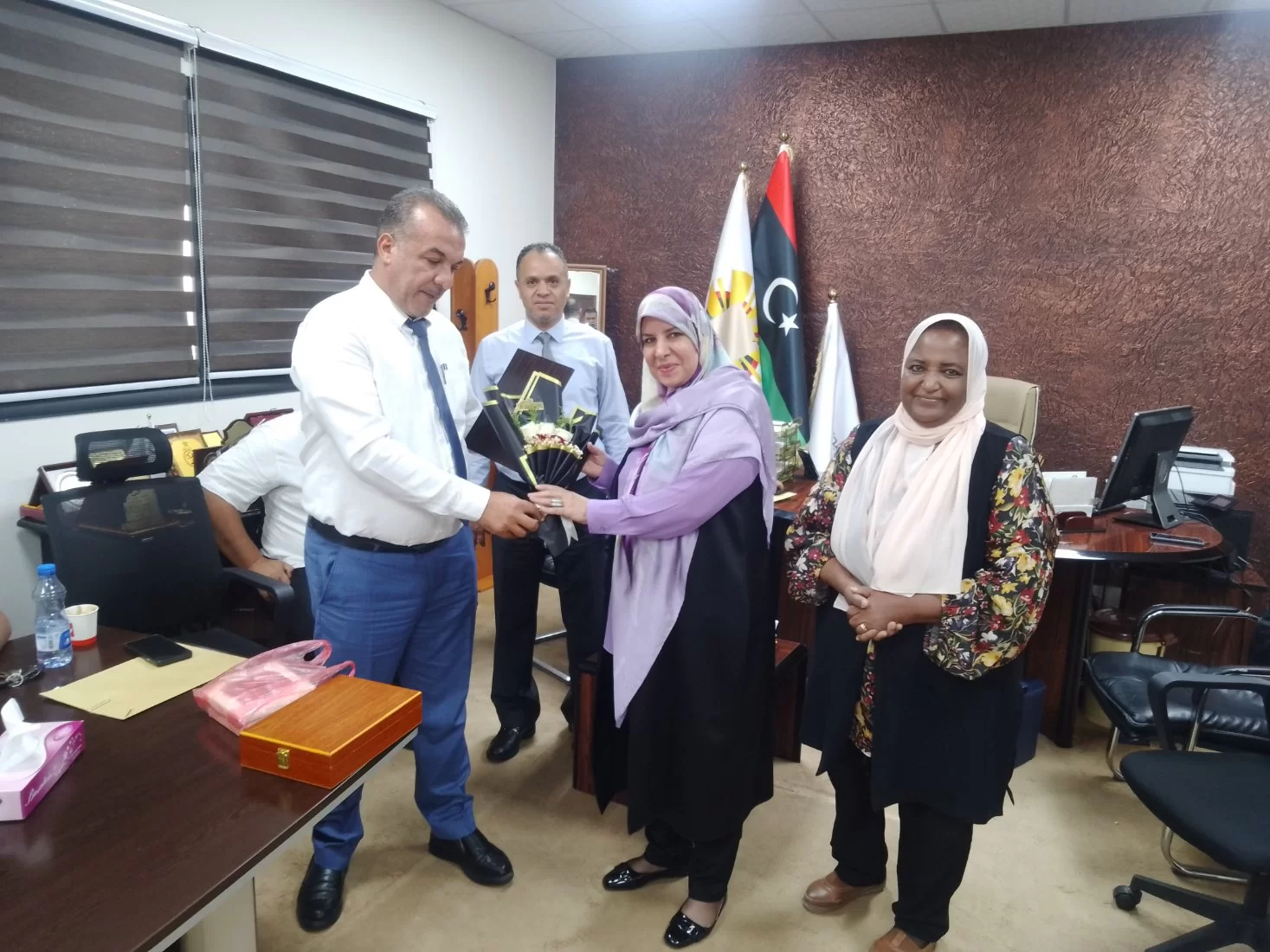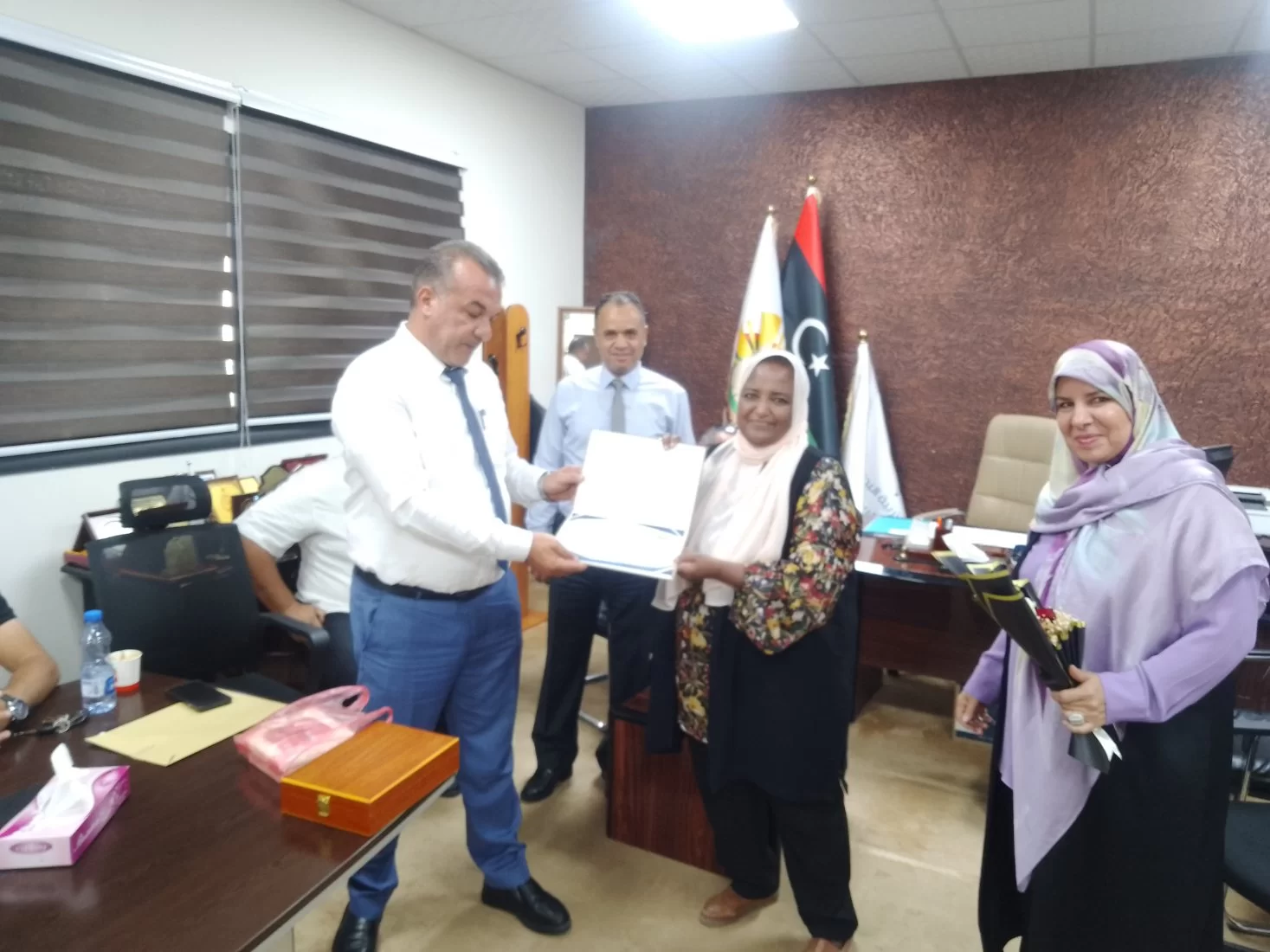 كذلك تسليم مهام وكيل الشؤون العلمية بالكلية بين الدكتور اسماعيل الهادي حصن الوكيل السابق والدكتورة ليلى عبدالقادر ابوشكيوة الوكيل الحالي .
