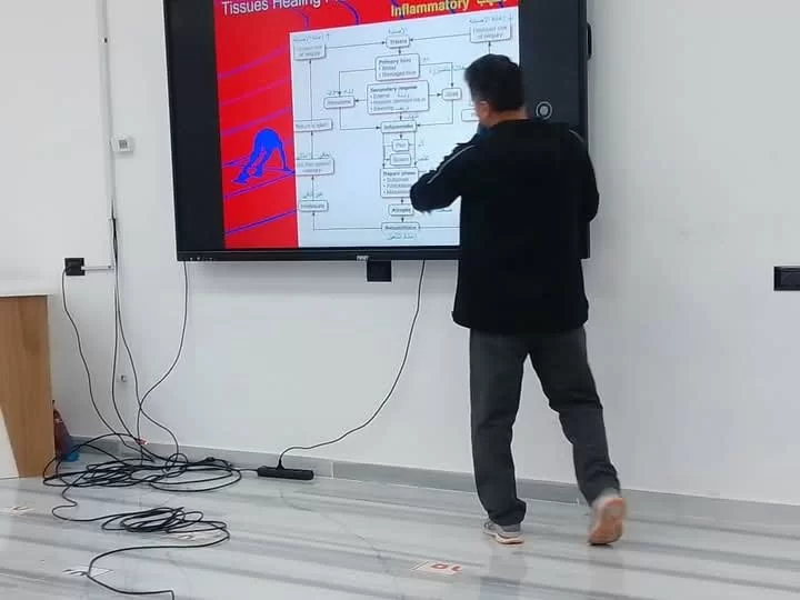 أقيم صباح اليوم الثلاثاء الموافق 31 / 12 / 2024 م بمدرج كلية التربية البدنية وعلوم الرياضة بجامعة طرابلس الجلسة الحوارية العلمية بالتعاون مع المنتدى الثقافي بالجامعة تحت عنوان التأهيل وإعادة التأهيل في الإصابات الرياضية . بين الواقع والمأمول. بحضور عضو المنتدى الثقافي بالجامعة وعميد الكلية و وكيل الشؤون العلمية ورؤساء الأقسام العلمية ومدراء الإدارات وأعضاء هيئة التدريس بالكلية طلبة الدراسات العليا والعديد من الضيوف والمهتمين بالتربية البدنية وعلوم الرياضة حيث لاقت الحوارية استحسان كافة الحضور . خالص الشكر والتقدير والاحترام لكل من ساهم في هذا العمل .