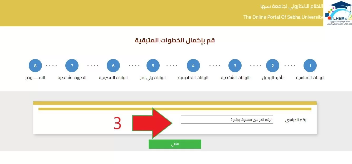 نرجو من كل اعضاء هيئة التدريس القارين بالكلية والمستمرين ضرورة التسجيل بالمنظومة الالكترونية الموحدة للجامعات الليبية على الرابط التالي https://lhems.ldl.ly في موعد أقصاه أسبوع من تاريخ هذا الإعلان.