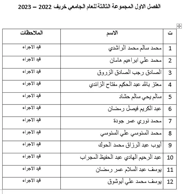 توزيع الطلبة المقبولين لفصل الخريف للعام الجامعي 2022 / 2023 على المجموعات بكلية التربية البدنية وعلوم الرياضة جامعة طرابلس