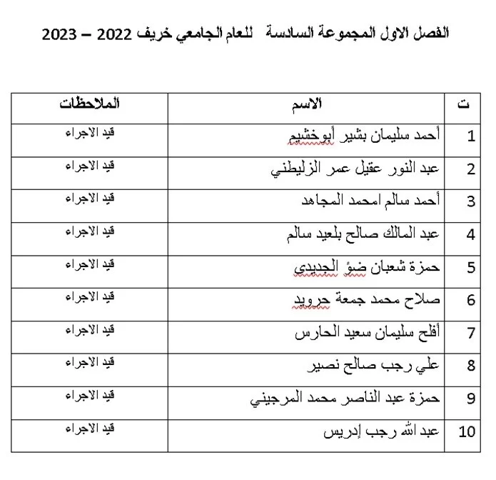 يطلب من الجميع الاطلاع على القوائم والالتزام بجدول المحاضرات كلا حسب مجموعته