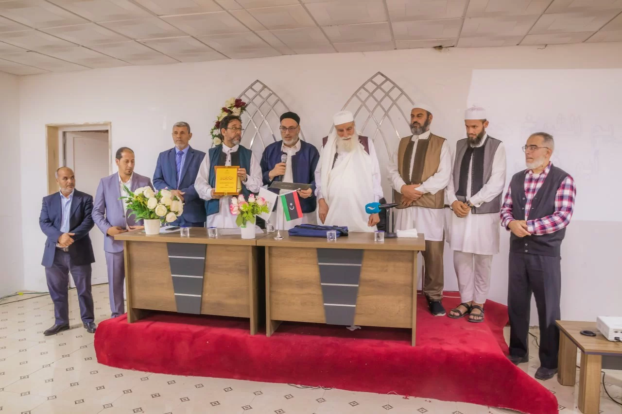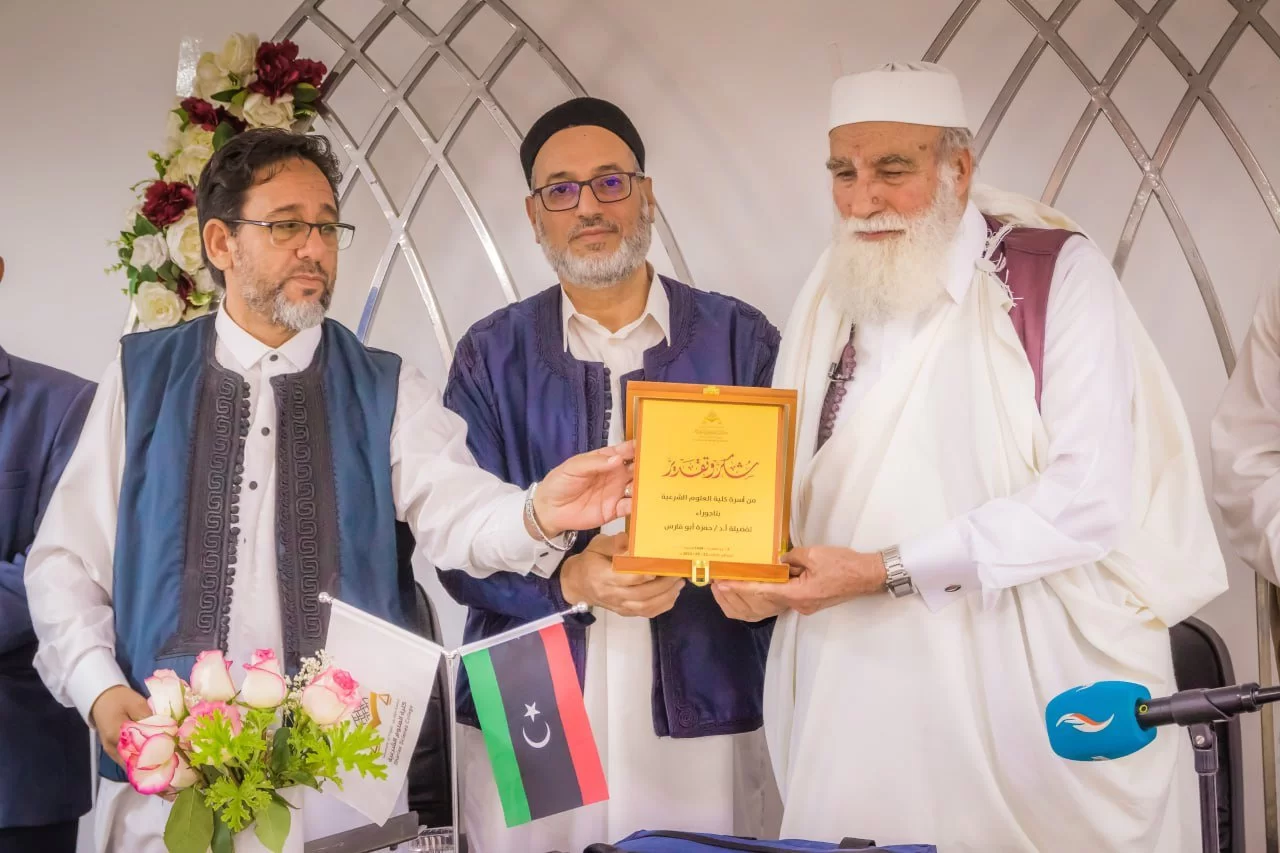 في نهاية المحاضرة قام السيد عميد الكلية بتكريم الشيخ حمزة بمنحه شهادة تقدير ودرع الكلية، تلا ذلك أخذ صور تذكارية بالمناسبة.