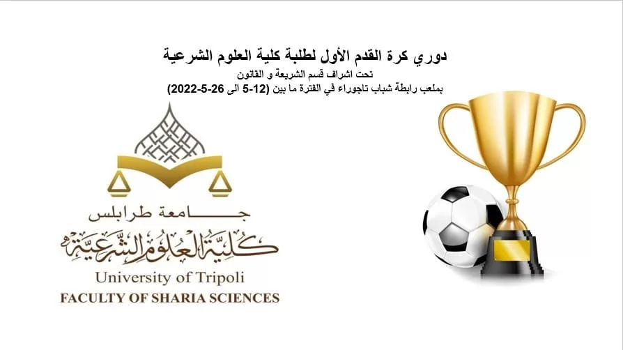يعتزم قسم الشريعة والقانون الاشراف على دوري لكرة القدم لطلبة الكلية