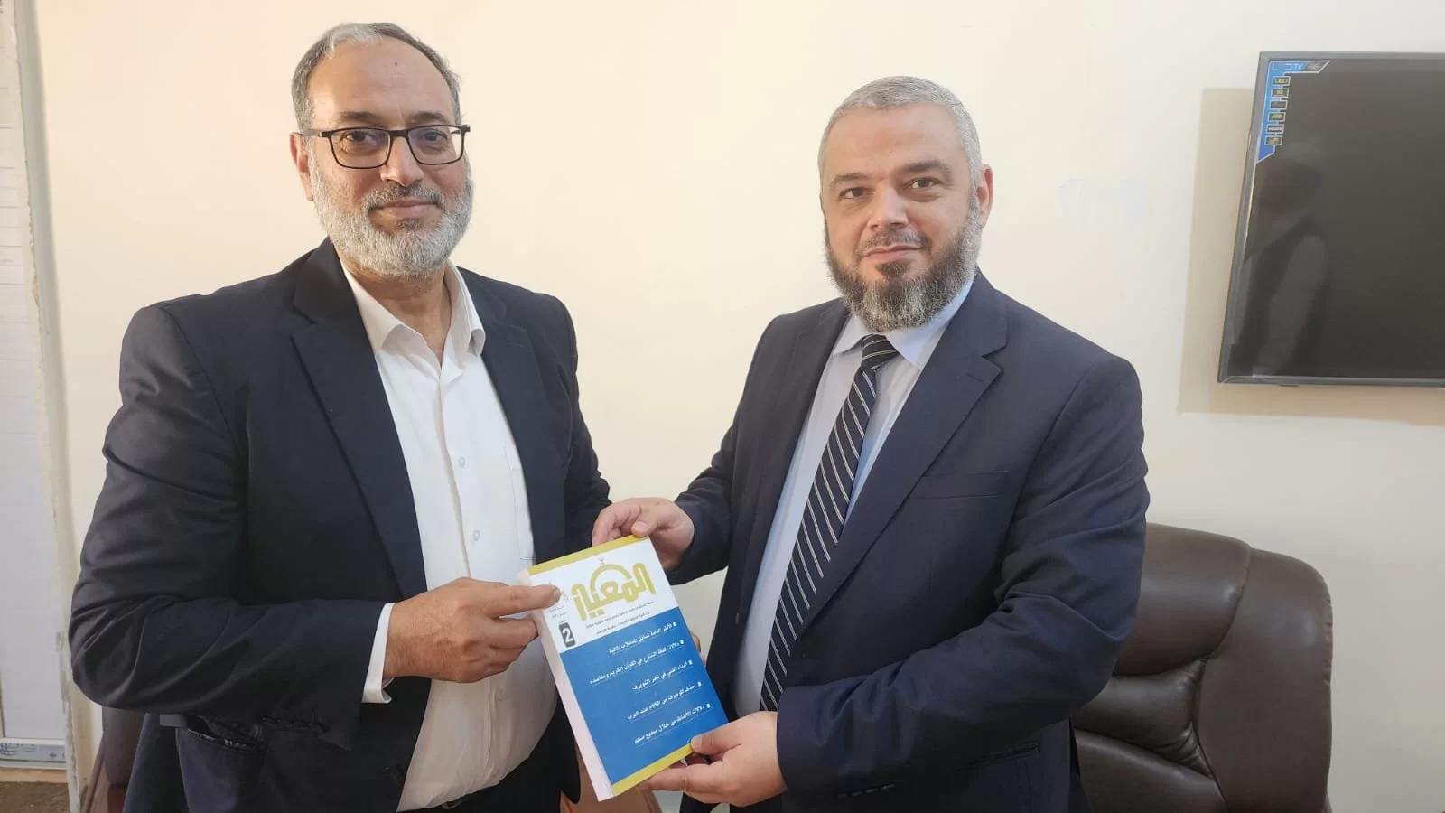 في نهاية اللقاء قدم الضيف الكريم للسيد عميد الكلية هدية، ممثلة في نسخة من المجلة العلمية التي تصدرها كليتهم، وبالمقابل قدم له السيد العميد نسخة من مجلة (المعيار) التي تصدرها كليتنا.