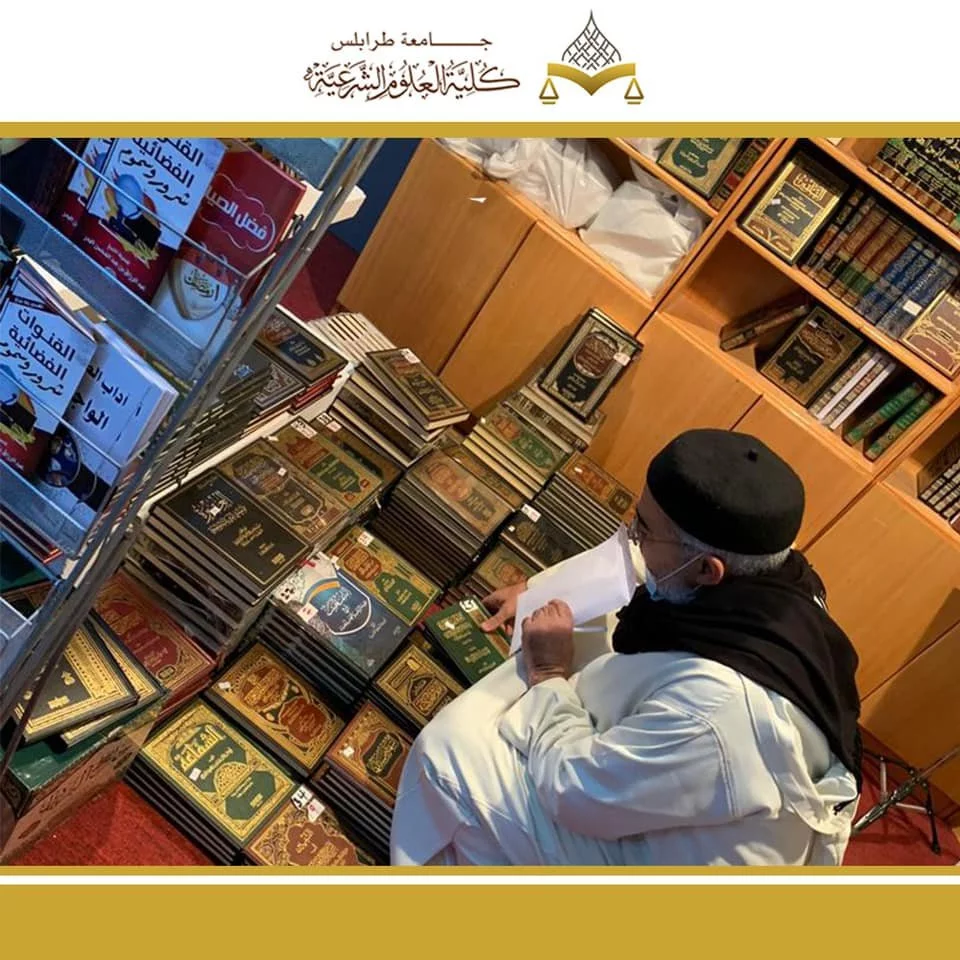 اغتناما لوجود الكلية في المعرض الوطني للكتاب، ونظرا للحاجة المُلحَّة لافتتاح مكتبة الكلية وإثرائها بالمراجع والكتب؛ تسهيلا للطالب، وتمهيدا لطريق طلاب العلم؛ فقد تم اقتناء كتب ومراجع علمية لا يستغنى عنها الطلاب في مسيرتهم ، تم توفيرها باستشارة رؤساء أقسام الكلية المختلفة: "قسم الشريعة و قسم الشريعة والقانون وقسم أصول الدين وقسم الاقتصاد وقسم اللغة العربية"..وقد حاز هذا الشرف أحد الأخيار، الذي تبرع بتكلفة هذه الكتب؛ صدقة جارية لوالدته الكريمة - أطال الله عمرها في طاعته - فتقبل الله منه وأجزل له العطاء.