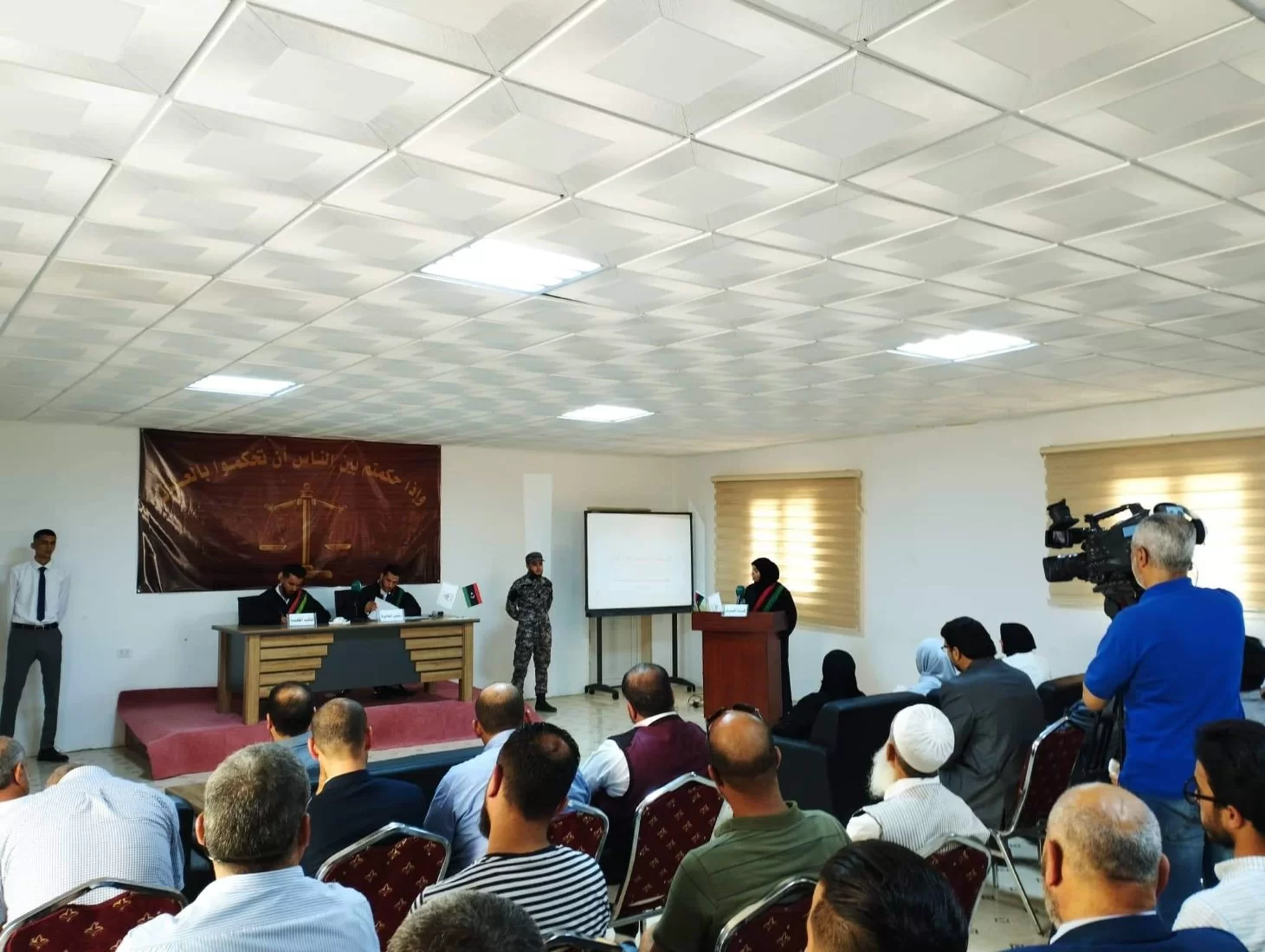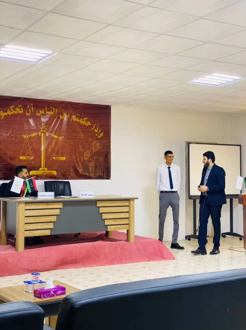 نظم قسم الشريعة والقانون بكلية العلوم الشرعية بتاجوراء هذا اليوم الثلاثاء الموافق 31. 5. 2022 المحاكمة الصورية الأولى، وقام بتنفيذها طلبة قسم الشريعة والقانون تحت إشراف أساتذة القسم، وقد حظيت المحاكمة بحضور ثلة من رجال القانون من أعضاء الهيئات القضائية، وكذلك حضور أولياء أمور الطلبة المشاركين في المحاكمة.وقد نالت المحاكمة إعجاب واستحسان الحضور.بارك الله في اللجنة المشرفة وفي الطلبة المشاركين والمنظمين، وفي كل من ساهم في إظهار هذا العمل بصورة متميزة.