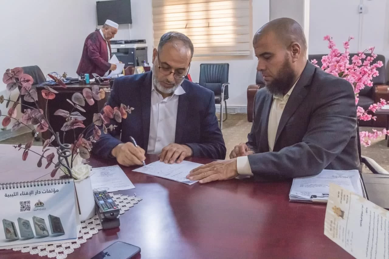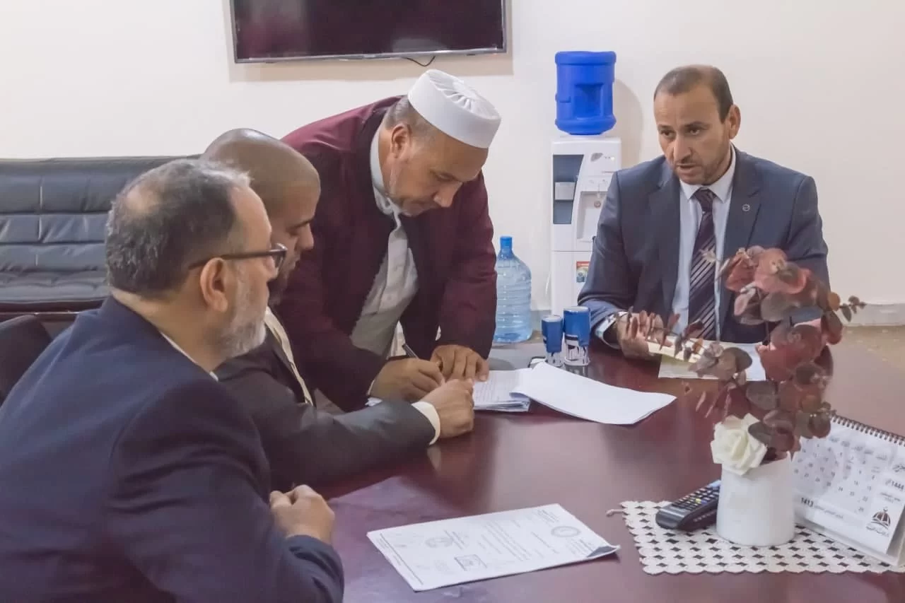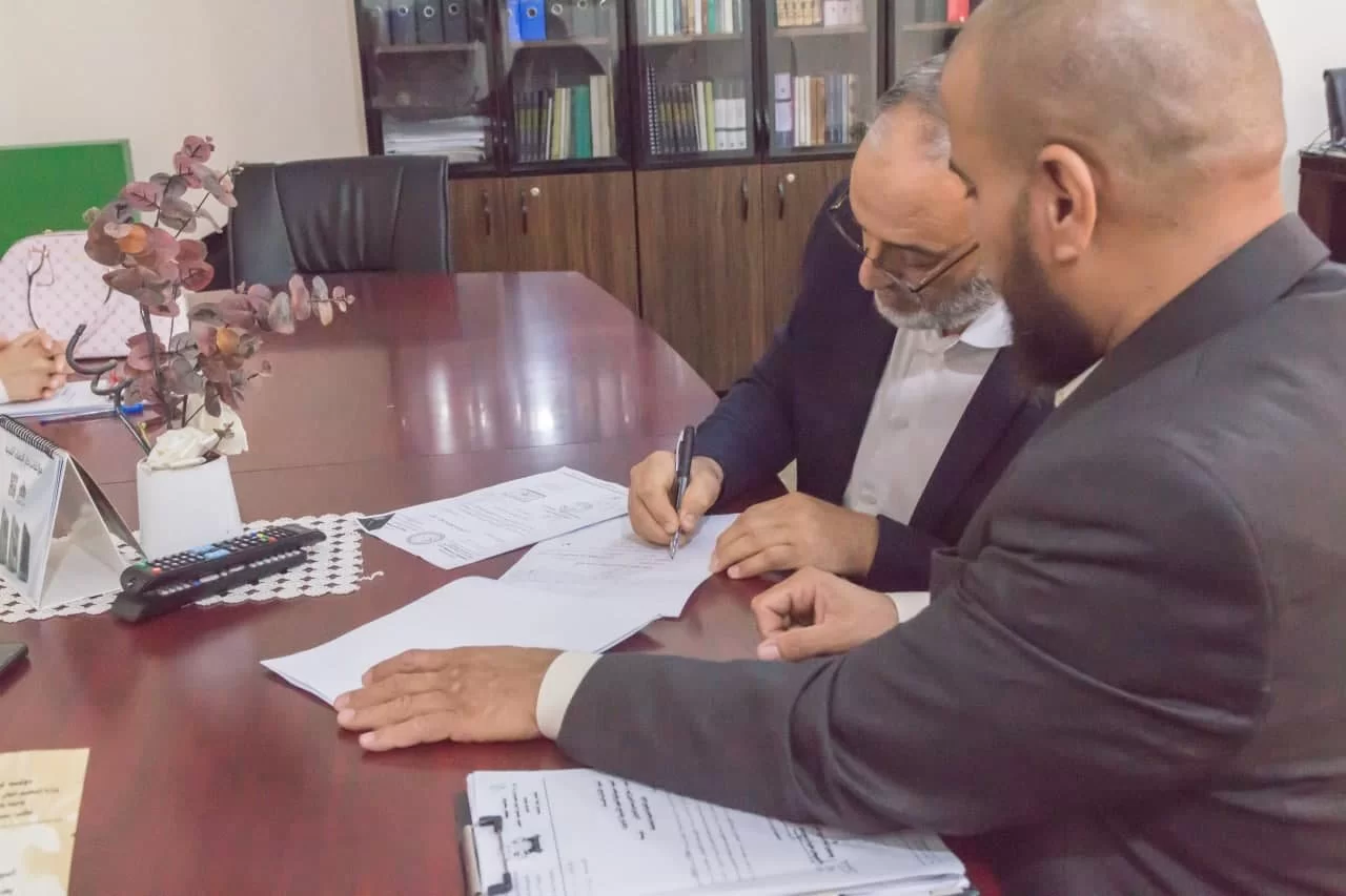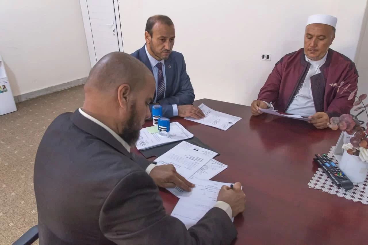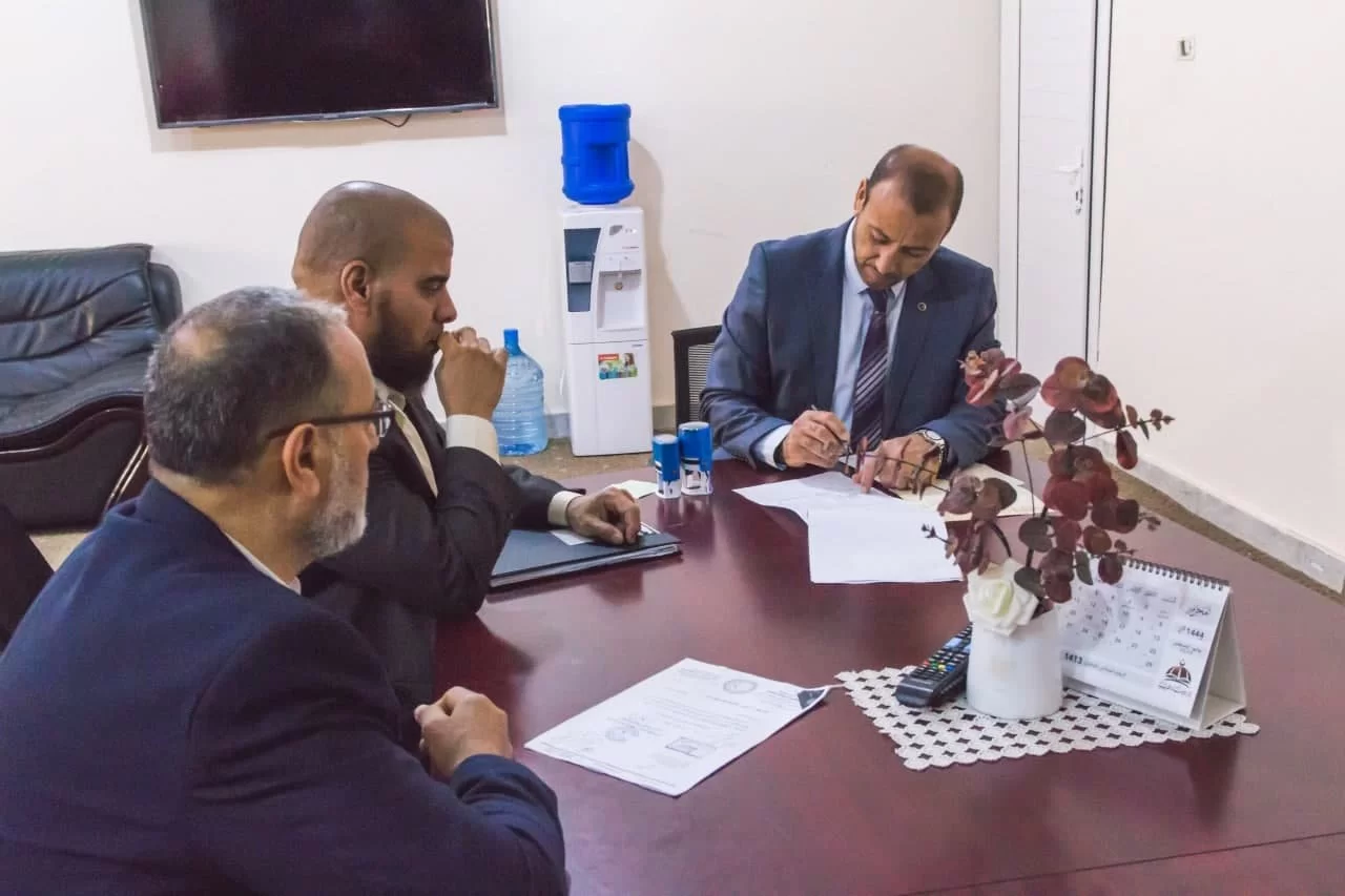 مراسم التسليم والتسلم بين عميد الكلية السابق د. عبداللطيف عبد السلام العالم وعميد الكلية الحالي د. فوزي شعبان الغرياني