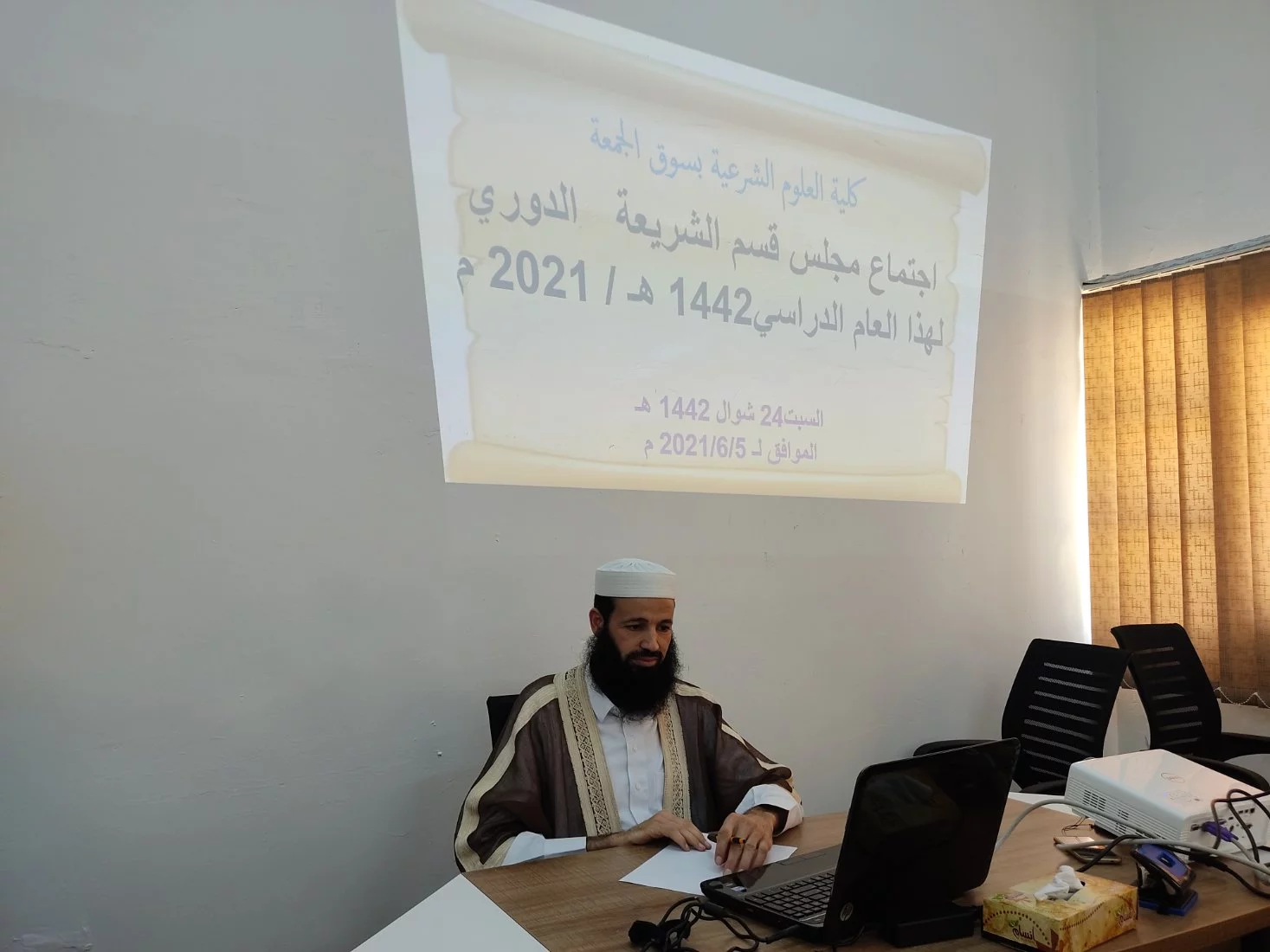 برئاسة أ. علي أبو منيار، رئيس قسم الشريعة في كلية العلوم الشرعية -سوق الجمعة؛- عقد مجلس القسم اجتماعه الدوري لهذا العام: 2021م، لمناقشة الاستعداد للامتحانات النهائية، وإعداد الأسئلة، وتسليم كشوفات الحضور والغياب للقسم، وما يستجد من أعمال.