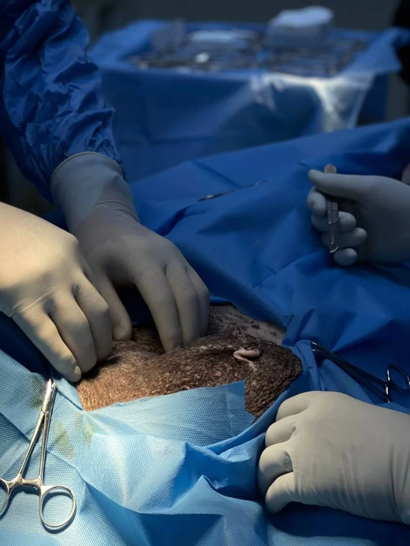 استقبل المستشفى التعليمي البيطري بكلية الطب البيطري جامعة طرابلس صباح اليوم الموافق 10/12/2024 حالة كلبة تبلغ من العمر 13 عام تعاني من انتفاخ كبير بين الفخدين، بعد الكشف الدقيق والتحاليل المعملية تم تشخيصها كفتق ( بعج) اربي