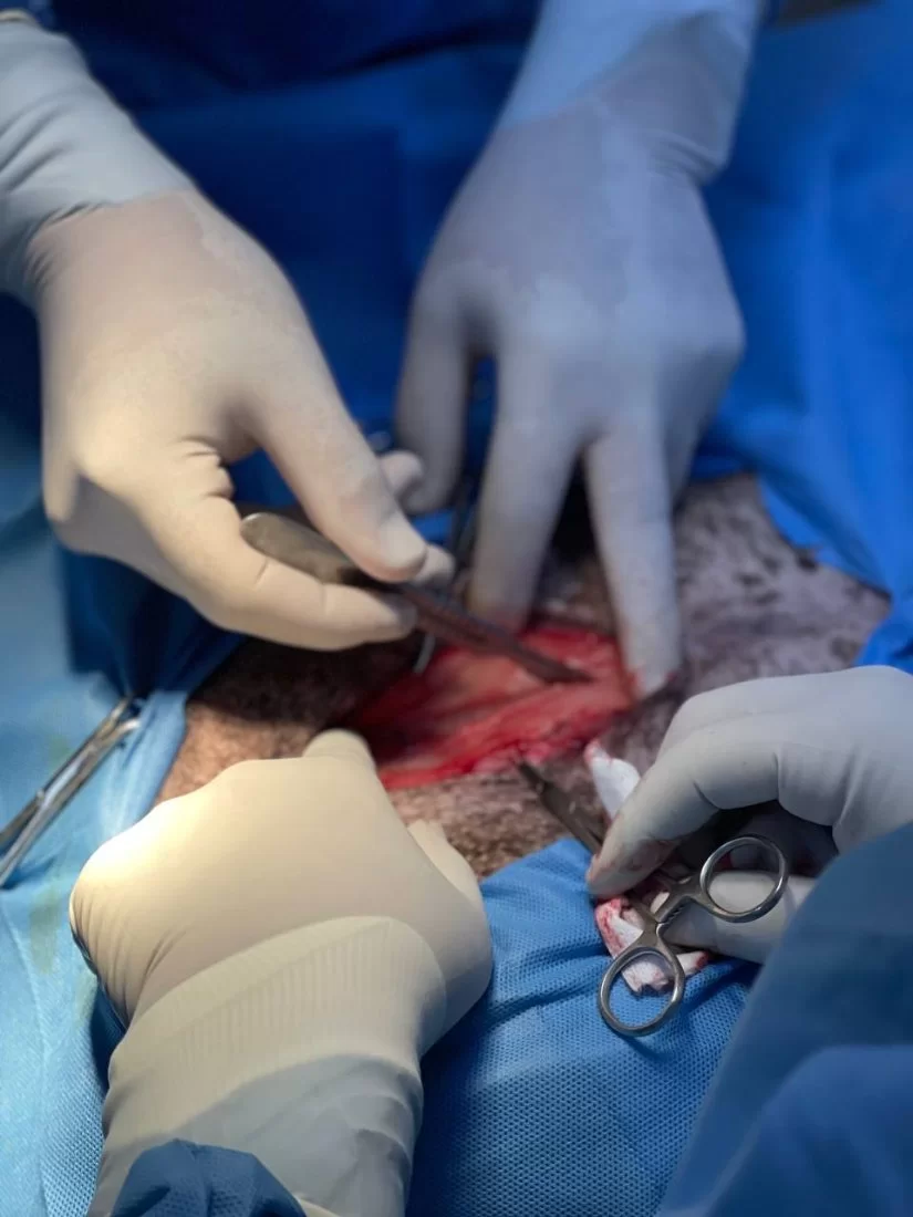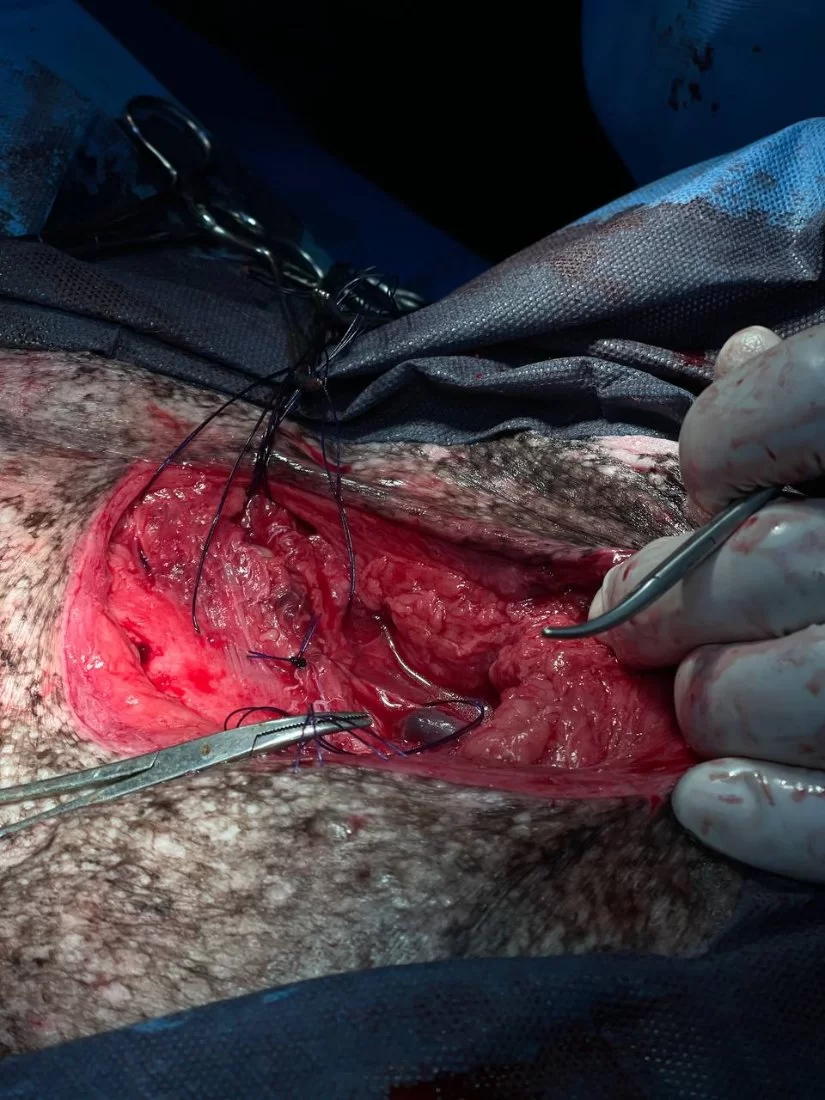 عملية ترقيع فتق إربي في كلبة.