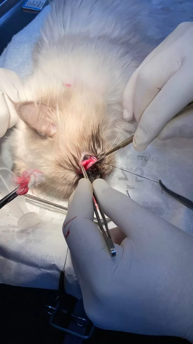 عملية جراحية لعين قط. Cherry eye