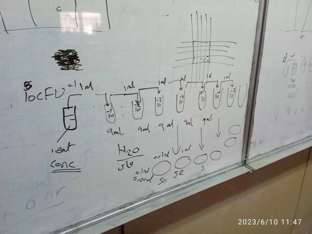 اما الجزء الثاني من العملي فقد شمل على أهمية و طرق عد البكتريا numeration of bacteria حيت تعلم الطلبة كيفية اجراء تخفيف البكتريا serial dilution استعماله في عد البكتريا بطريقتين