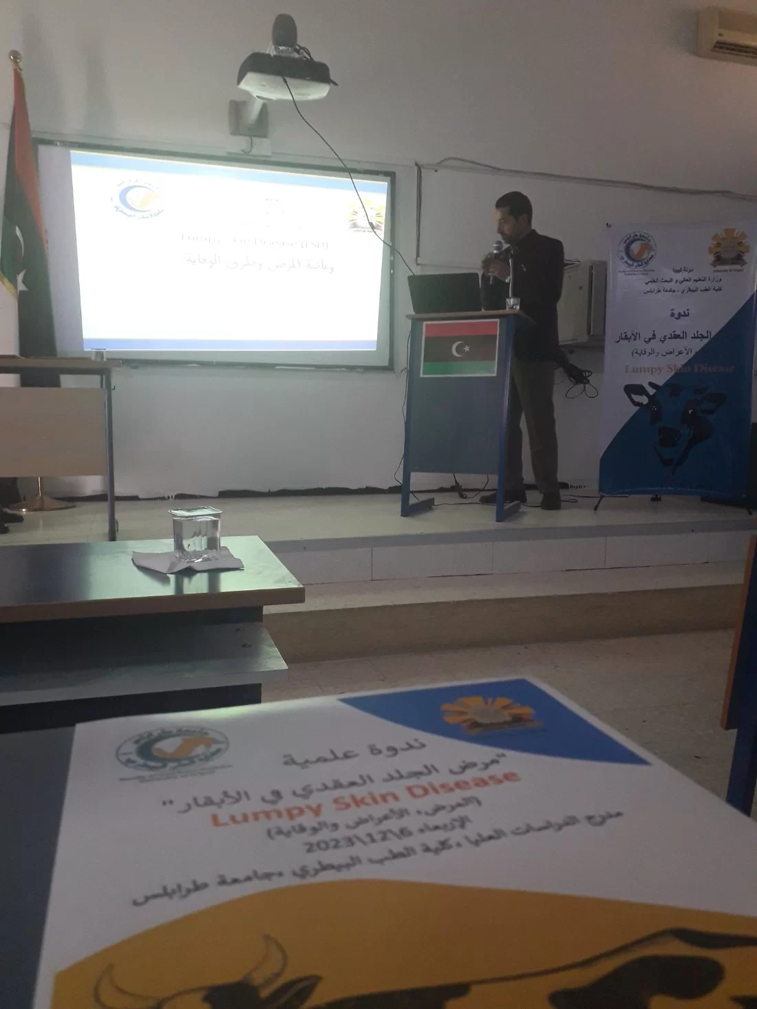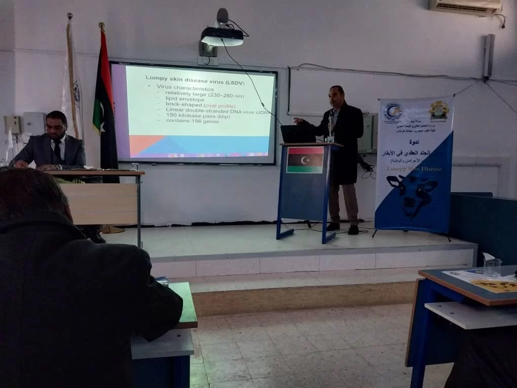 أقيمت صباح اليوم الموافق 06/12/2023 ندوة علمية حول مرض الجلد العقدي في الأبقار( lumpy skin disease ) بقاعة الدراسات العليا بكلية الطب البيطري جامعة طرابلس.