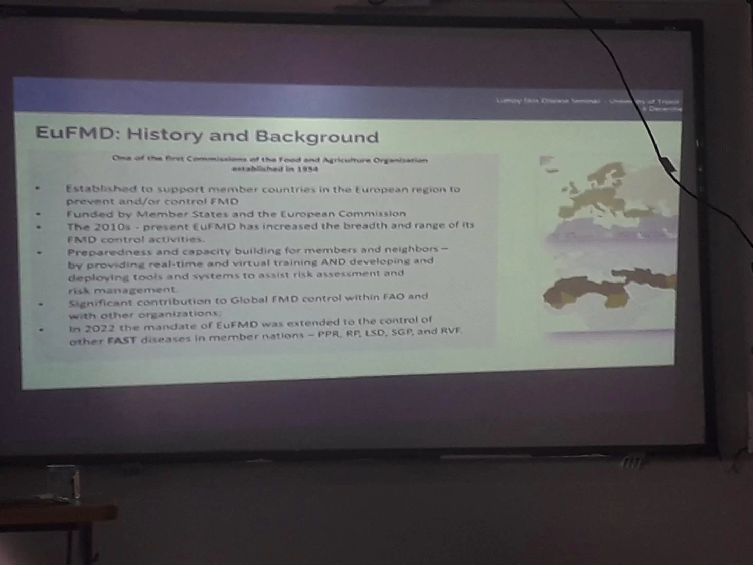 قامت كلية الطب البيطري عن طريق نخبة من الخبراء أعضاء هيئة التدريس بالكلية بتسليط الضوء حول هذا الحدث العلمي المهم للتعريف بالمرض وخطورته على الثروة الحيوانية وكيفية التعامل معه والحد من انتشاره والخروج بتوصيات للجهات المختصة ذات العلاقة.