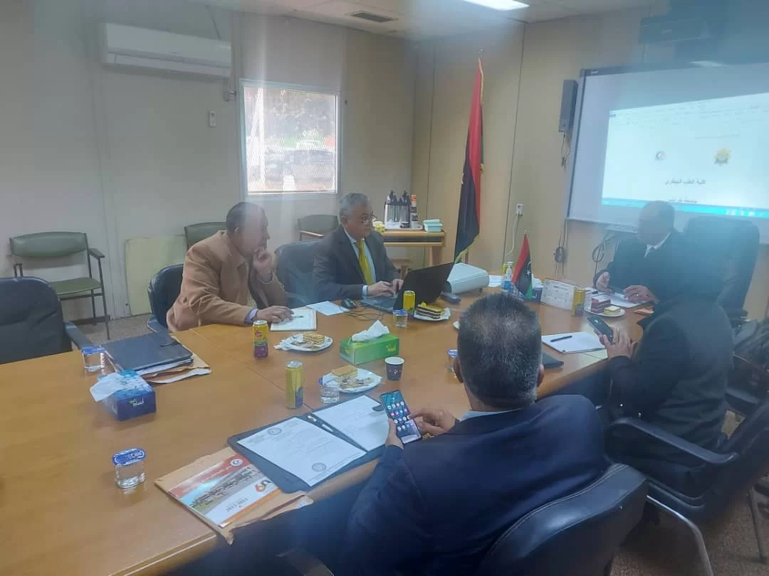 بدعوة من اللجنة الرئيسية للكليات الطبية والطبية المساعدة وبرعاية السيد/ أ.د خالد عون رئيس جامعة طرابلس وبحضور السيد/ د. طلال الزرقاني وكيل الجامعة للشؤون العلمية والسيد/ أ.د جمال الفردغ رئيس اللجنة الرئيسية للجان الكليات الطبية والطبية المساعدة بوزارة التعليم العالي والبحث العلمي.