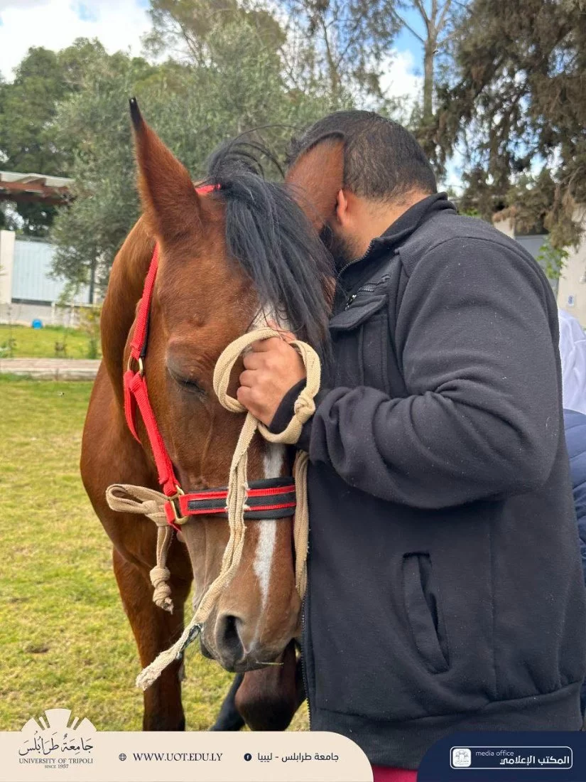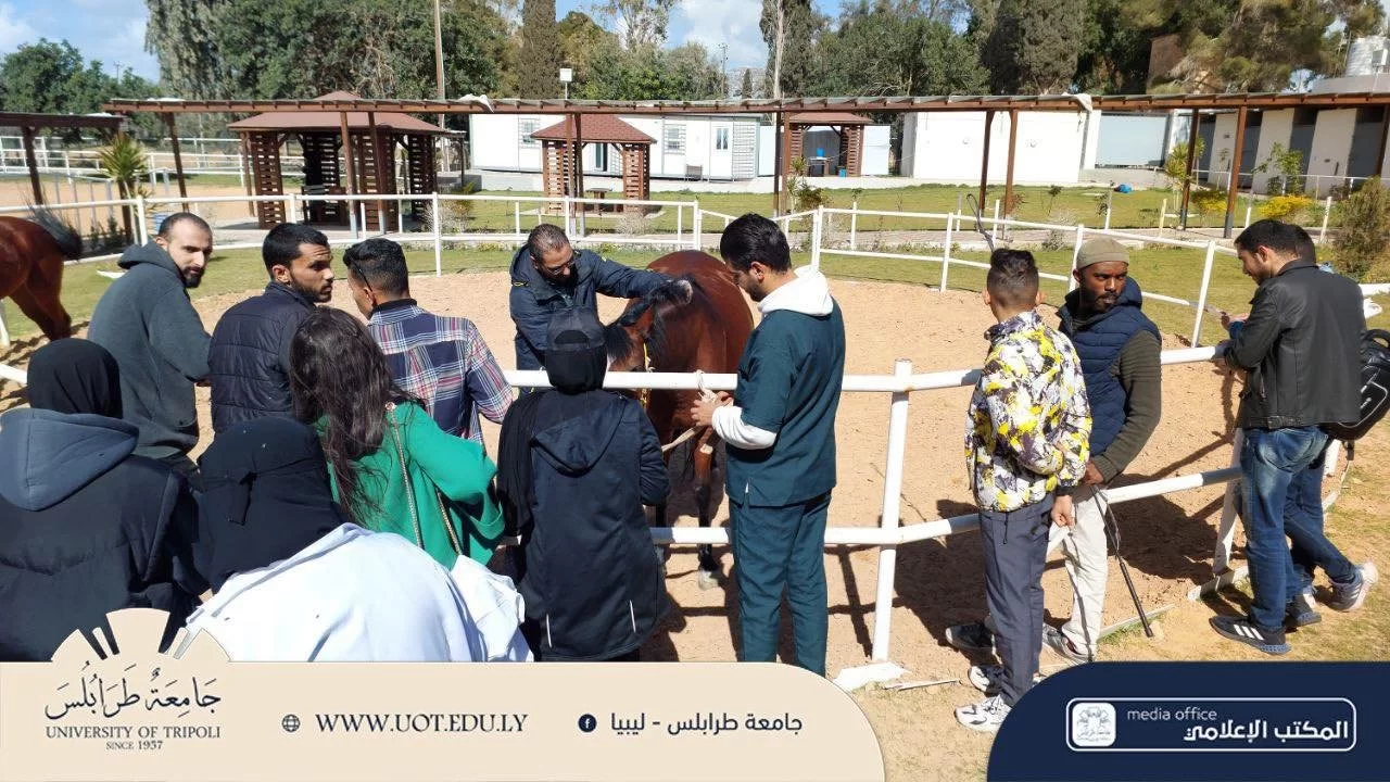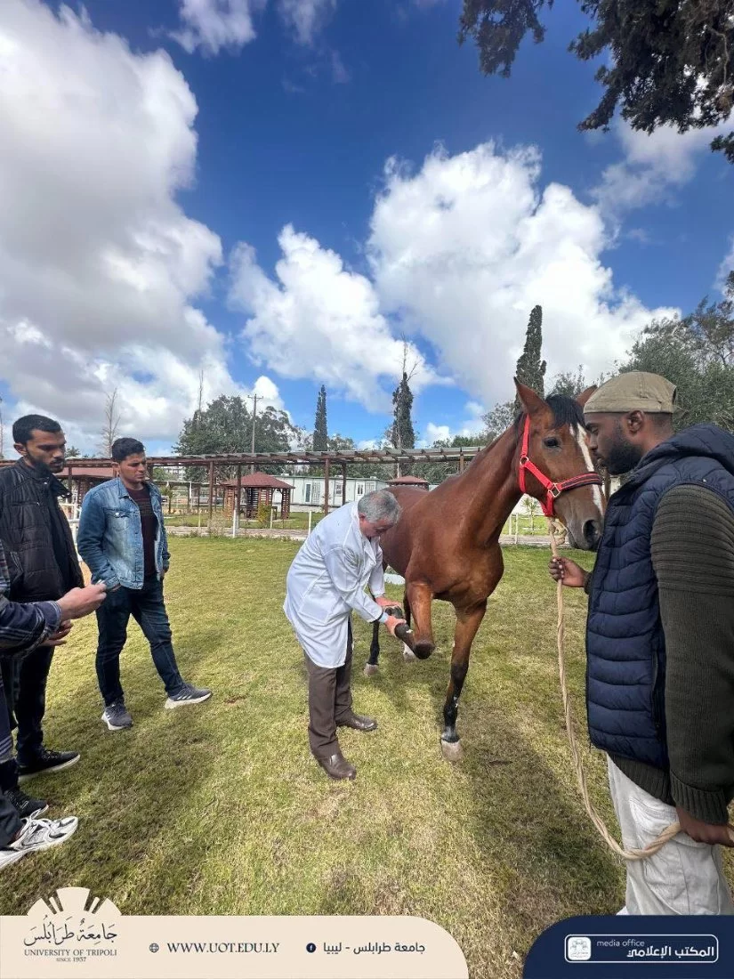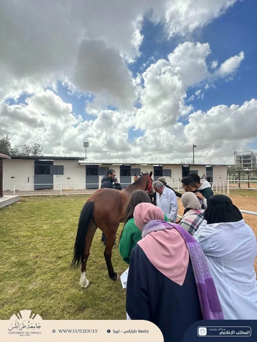 محاضرة عملي لطلبة السنة الخامسة داخل نادي جامعة طرابلس للفروسية