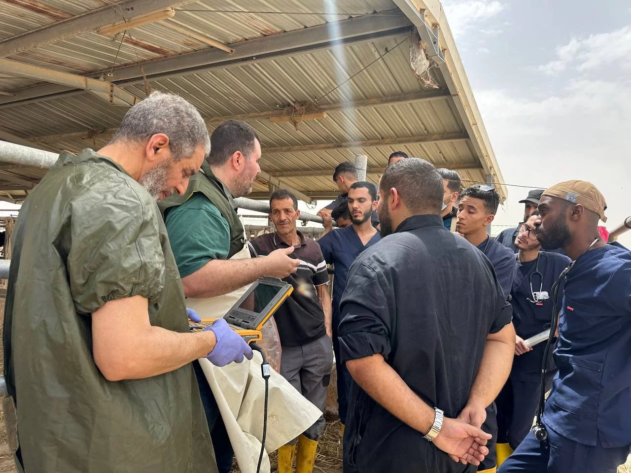 - كما قام الفريق الزائر بالكشف على العديد من الحالات وتحديد اهم المشاكل الطبية والحلول الناجعة للتقليل من الإصابات وزيادة إنتاجية القطيع.