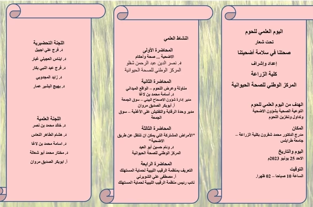 اليوم العلمي للحوم تنظيم كلية الزراعة جامعة طرابلس