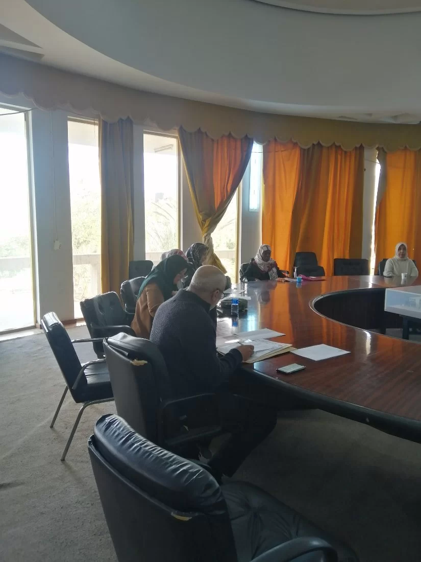 تم اجتماع القسم بحضور اعضاء هبئة التدريس ورئيس قسم الاستاد عبد الرزاق حكم وتمت مناقسة كل بنود الاجتماع بكل موضوعية واتخاذ مايلزم من قرارات شانها بما يضمن الارتقاء بمستوي العملية التعليمبة داخل القسم