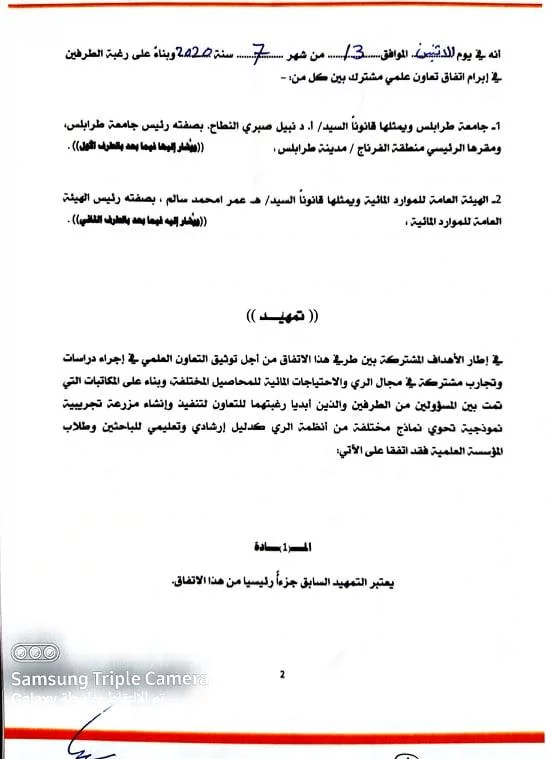 اتفاق تعاون علمي مشترك لتنفيذ مشروع المزرعة النموذجية لأنظمة الري المختلفة