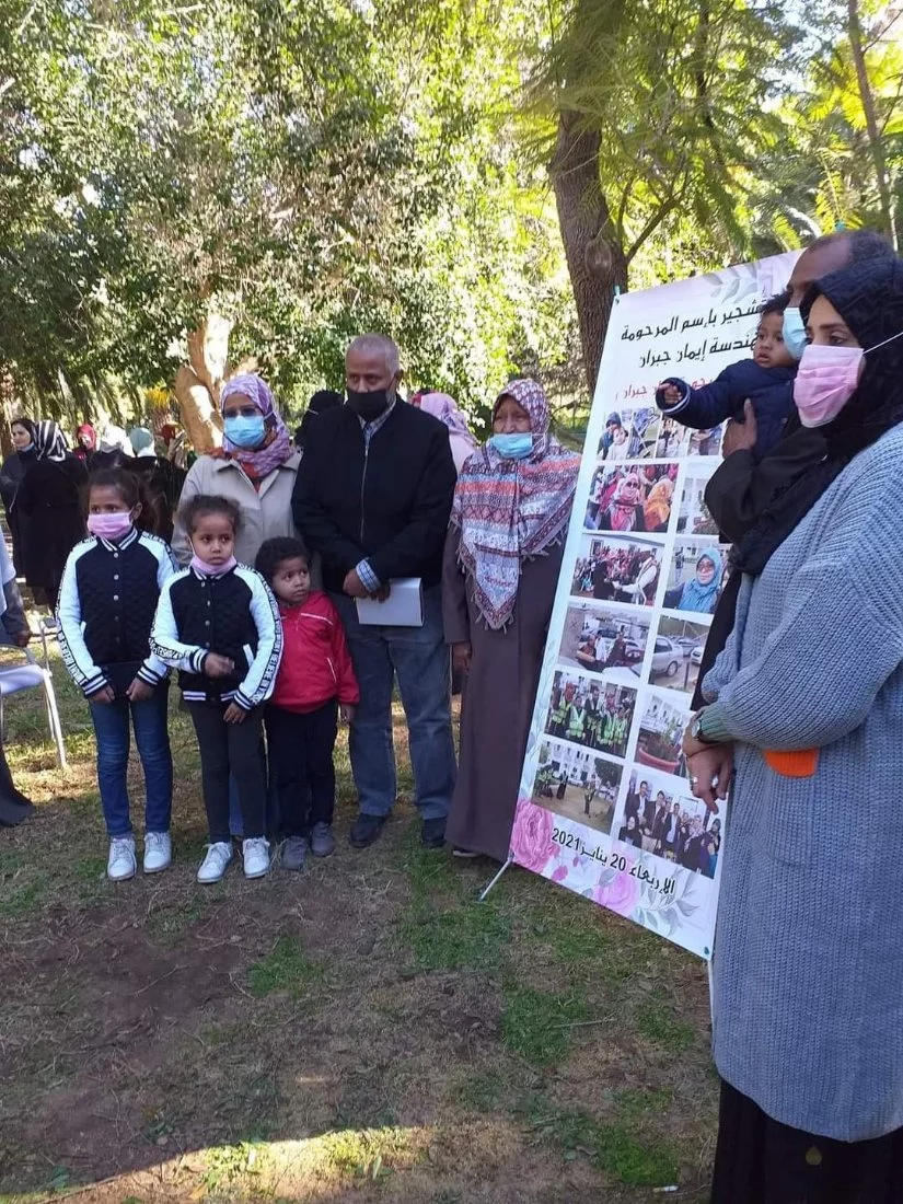 تخليدا لذكرى المرحومة/ م. إيمان جبران أقيمت صباح يوم الأربعاء الموافق: 20/01/2021 بمحطات الأبحاث بكلية الزراعة حملة تشجير، وزرع مصدات رياح لحقول الفاكهة والزينة، وذلك بالتنسيق بين العاملين بمحطات الابحاث وملتقى خريجي كلية الزراعة. ولقد شاركت في الحملة أسرة المرحومة، والسيد/ أ. د. نوري الساحلي مادي، عميد الكلية، والسادة: رئيس قسم المحاصيل، ورئيس قسم الاقتصاد المنزلي، ومدير الشؤون الادارية والمالية بالكلية، وبعض أعضاء هيئة التدريس، ومجموعة من موظفي الكلية وعدد كبير من. ضيوف الكلية.نسأل الله الرحمة للفقيدة والشكر للعاملين بمحطة الابحاث بالكلية وشباب ملتقى خريجي كلية الزراعة