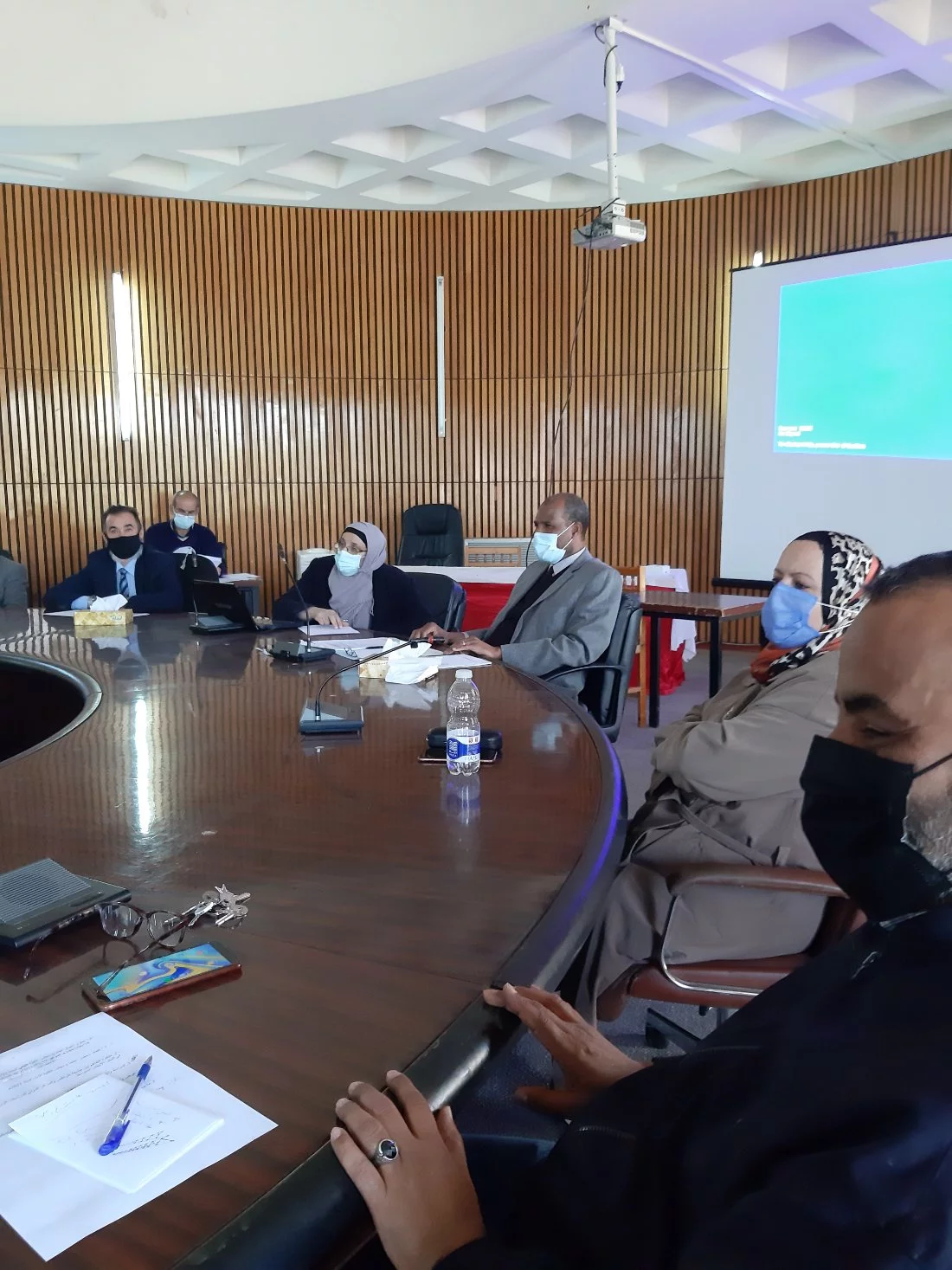 عقد صباح اليوم الاربعاء الموافق: 10/02/2021 اجتماع مجلس الكلية الثاني لسنة 2021 بقاعة اجتماعات مجلس الكلية.