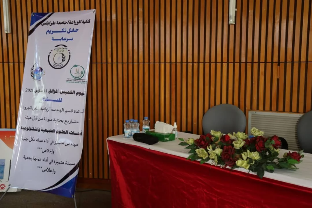 أستُهل البرنامج بكلمة افتتاحية ألقاها السيد/ د. فرج علي جبيل، الذي كان وراء فكرة إقامة حفل التكريم، وأشرف على تنظيمه، حيث رحب بالسادة الحضور، وأثنى على جهود السادة المكرمين، وأقترح أن يخصص يوم الحادي عشر من مارس من كل سنة لتكريم العناصر المتميزة بحسن الأداء والإخلاص في العمل بالكلية. وبعد ذلك ألقى عميد الكلية، السيد/ أ. د. نوري الساحلي مادي، كلمة رحب فيها بالسادة الحضور، وخص بالترحيب سيادة/ رئيس الجمعية العمومية لمنظمة النماء للأمن الغذائي، المهندس عبد المنعم الميهوب، وشكره على اهتمامه بكلية الزراعة، ودعمه للبحث العلمي، الذي يعتبر الأساس الذي يُبنى عليه لتحقيق الأمن الغذائي لهذا البلد، كما تقدم بأسمى آيات الشكر والتقدير لإدارة مكتب الكون للاستشارات الزراعية وقسم الهندسة الزراعية، على المساهمة في إقامة هذا الحفل، ثم عبر عن تقديره، واحترامه للمكرمين الأربع، وجميع أعضاء الفريقين البحثيين. أعطيت الكلمة بعد ذلك للسيد/ رئيس الجمعية العمومية لمنظمة النماء للأمن الغذائي، الذي عبر عن سعادته بحضور الحفل، وأشاد بأهمية البحثين المنجزين، وتمنى للكلية تحقيق المزيد من التقدم في المجال البحثي والتعليمي. وعبر السيد/ م. خالد موسى أبوسنينة، نيابة عن السادة/ المكرمين عن خالص شكره وتقديره لكل من ساهم في إقامة حفل التكريم.