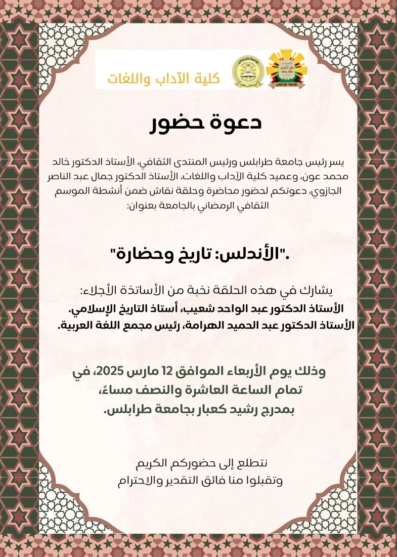 محاضرة وحلقة نقاش ضمن أنشطة الموسم الثقافي الرمضاني بالجامعة الأندلس تاريخ وحضارة-