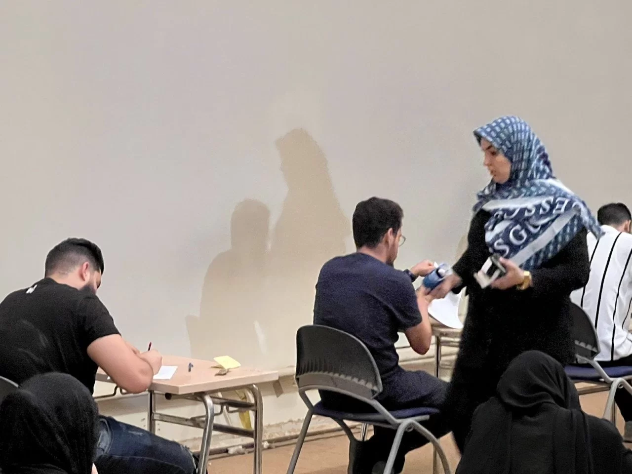 هذا وقد اجريت الامتحانات داخل اروقة وممرات الكلية بالاضافة الى القاعات الدراسية الصغرى والمعامل .