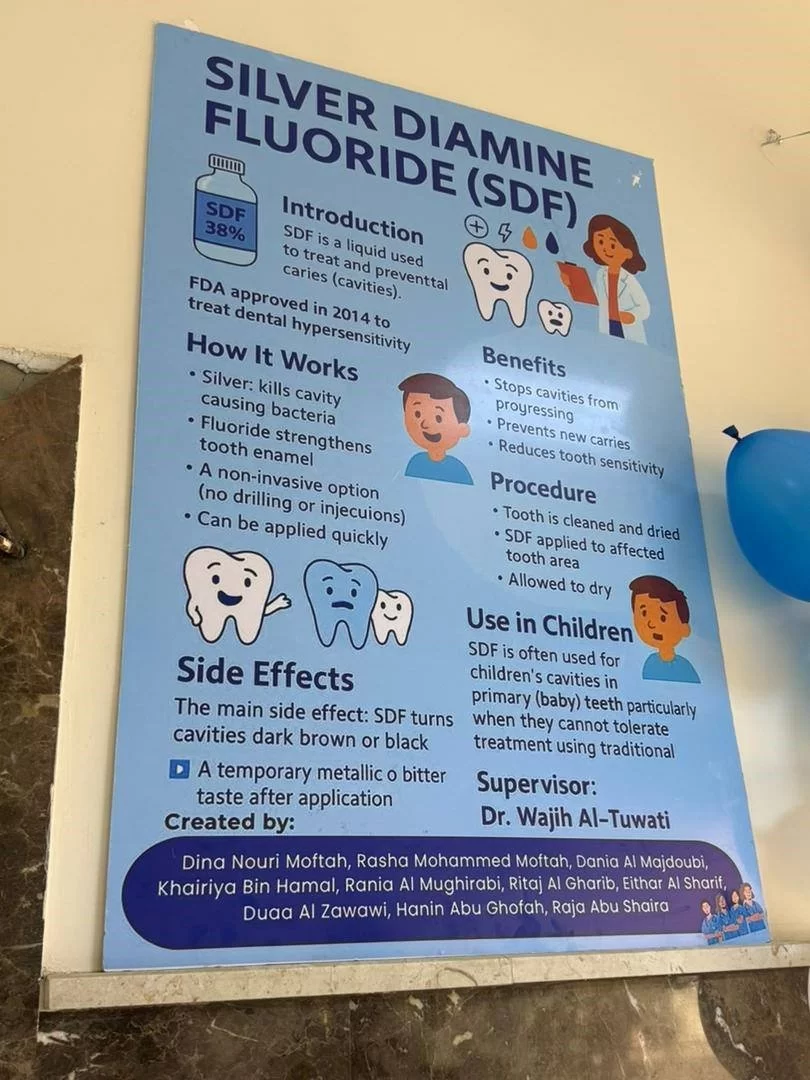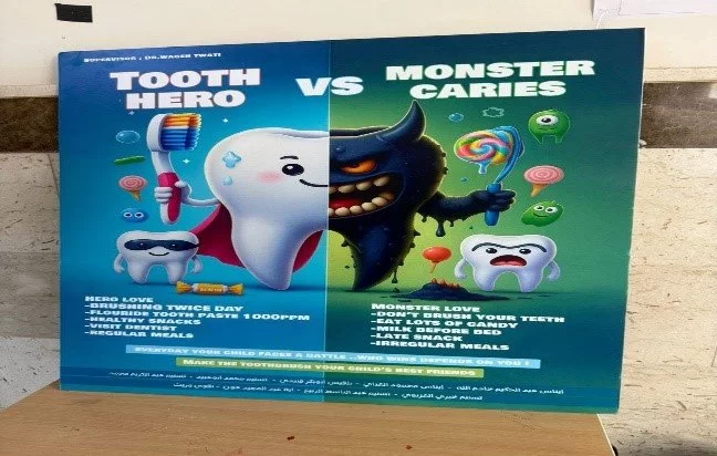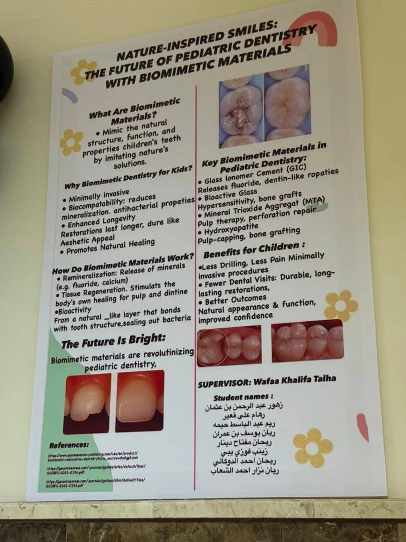 ة معرض الملصقات العلمية لطلاب السنة الرابعة دفعة 32 وذلك يوم الثلاثاء بتاريخ 23/9/2025م بالمبنى الرئيسي بكلية طب وجراحة الفم والاسنان جامعة طرابلس تحت إشراف وحدة طب اسنان الاطفال وسط حضور غفير من الطلاب و اعضاء هيئة التدريس بالكلية ، و قد افتتح هذه الفعاليات ا.د. عميد الكلية، و السيد د. وكيل الكلية، و حضرت السيدة ا.د. الوكيل المساعد للعلوم الإنسانية بجامعة طرابلس افتتاح هذه الفعاليات و ابدت اعجابها بالمعرض و افكار هذه الملصقات العلمية و التي تواكب التطور المستمر في مايتعلق بطب اسنان الاطفال.