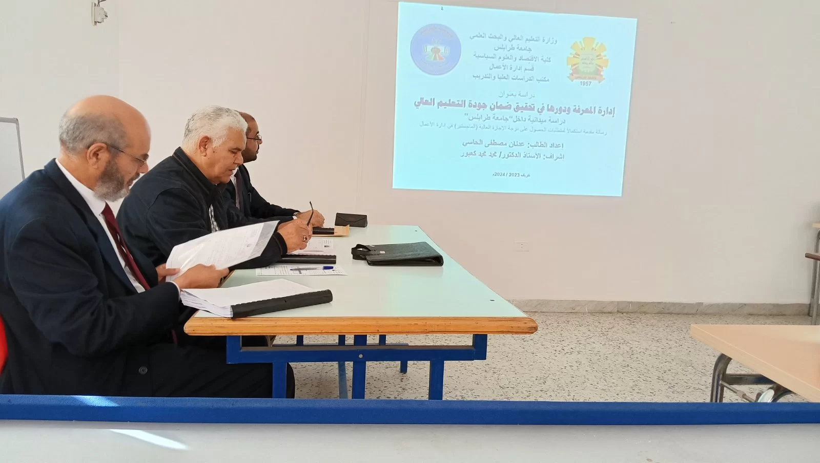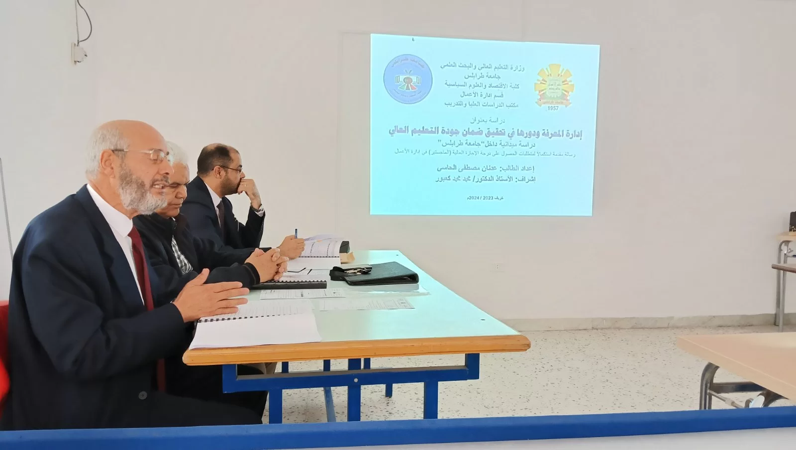 بتوفيق من الله عز وجل تمت مناقشة رسالة الإجازة العالية (الماجستير) في الإدارة يوم الخميس الموافق 21/3/2024 صباحاً بقاعة المناقشة بالدراسات العليا، للطالب: عدنان مصطفى الحاسي.